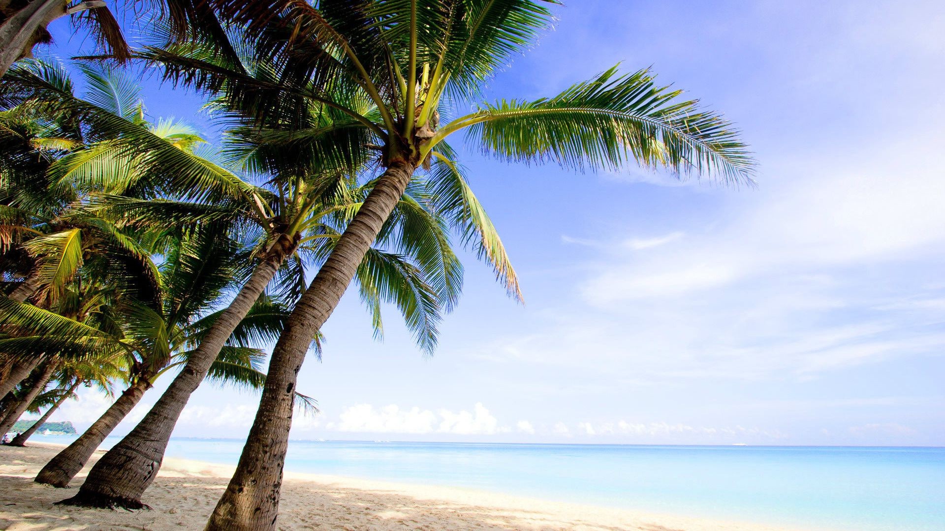 Sonnenuntergang am Strand mit exotischen Pflanzen