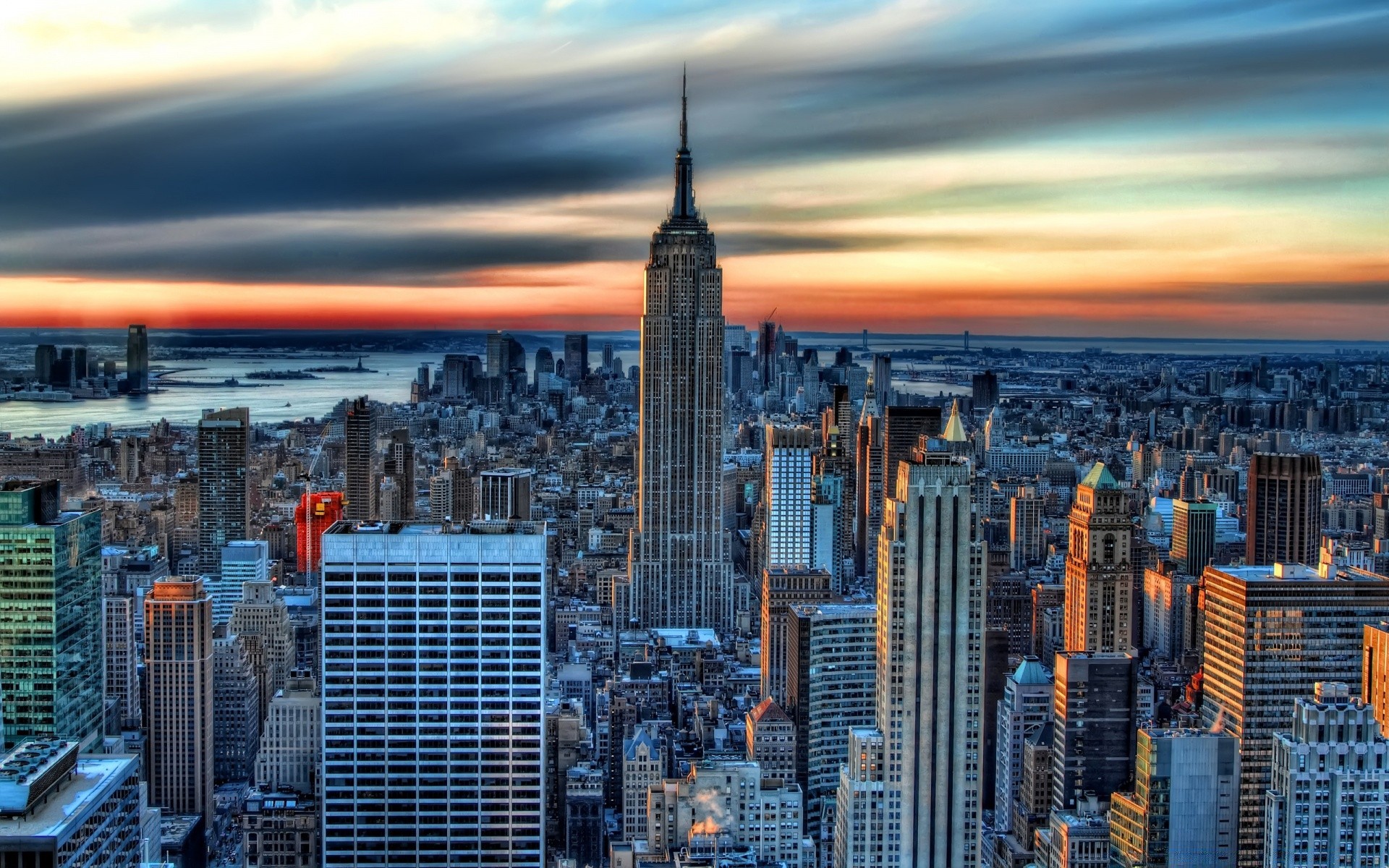 Wunderschöne Stadt vor dem Hintergrund des Abendhimmels