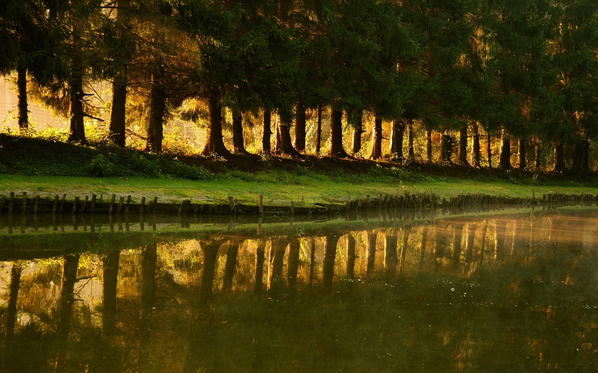 Zaun aus Bäumen rund um den See