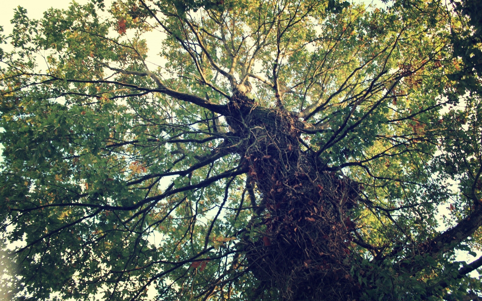 Die Natur. Ein mit Efeu umwickelter Baum