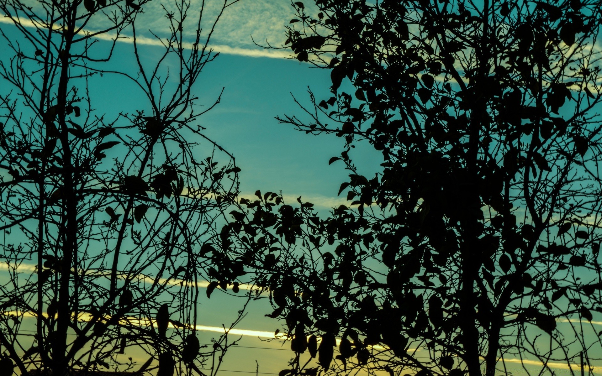 Schöner Sonnenuntergang durch Bäume
