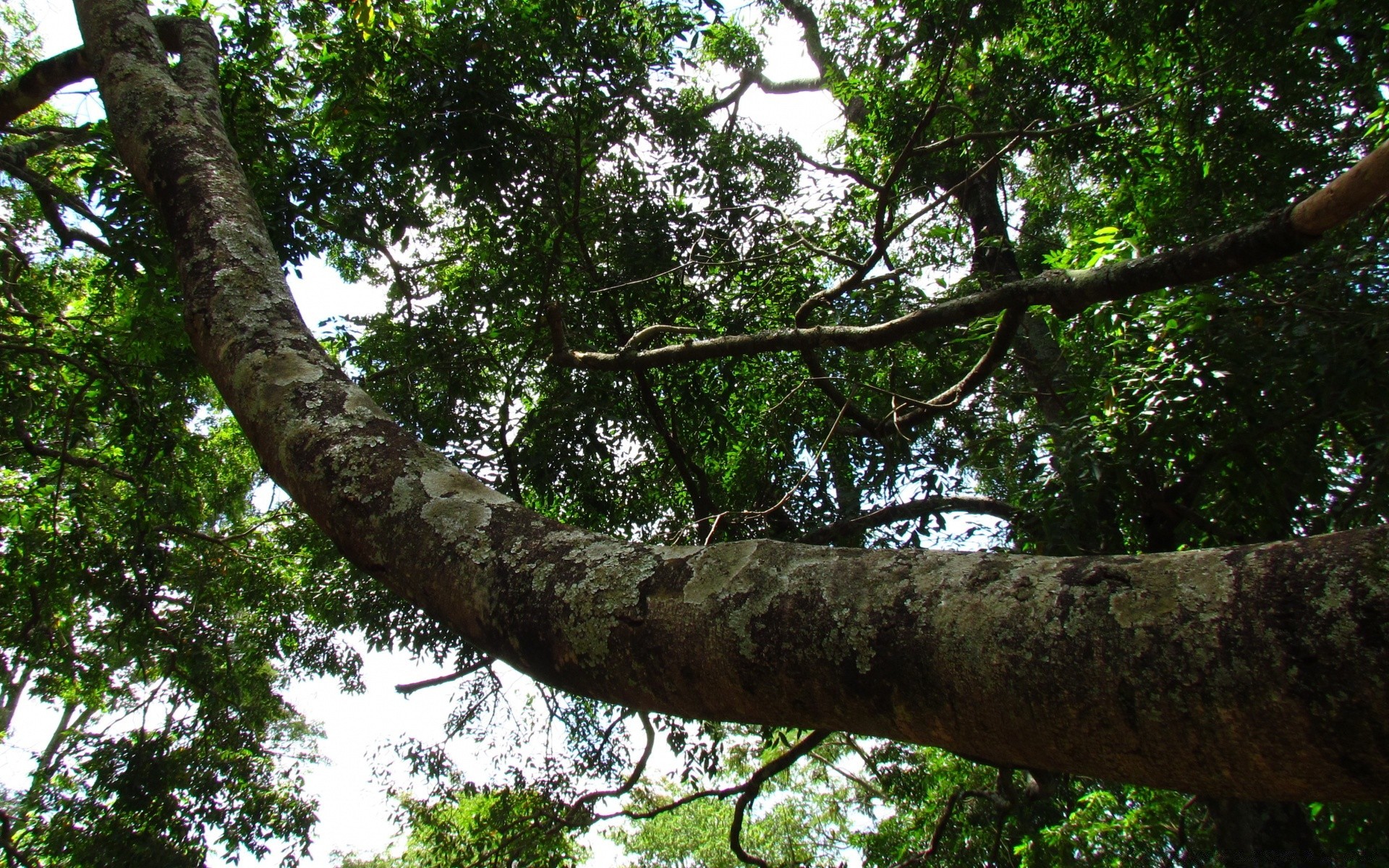Eine Waldstraße inmitten dichter grüner Vegetation