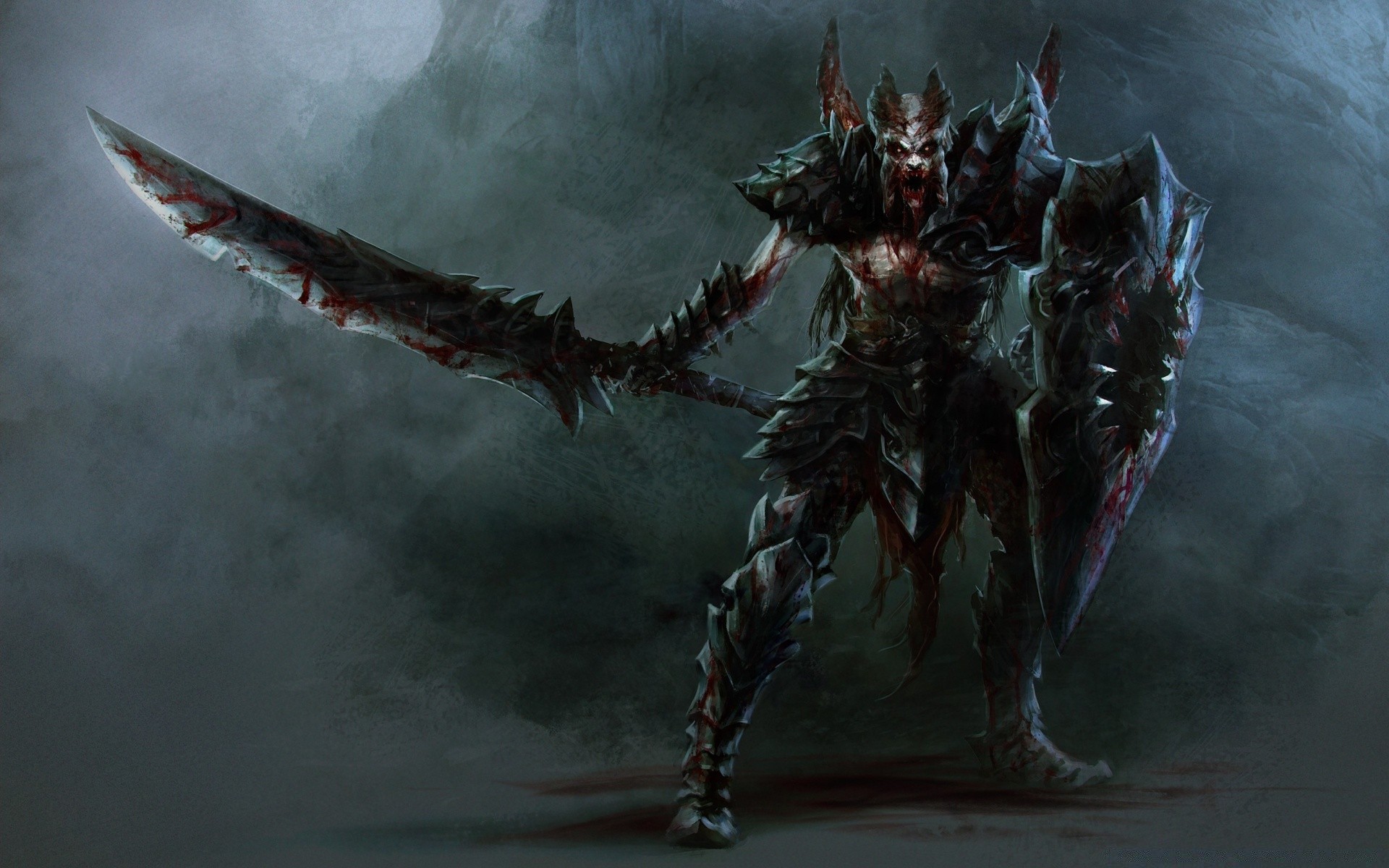 Abbildung eines Monsters mit einer Waffe und einem Schild