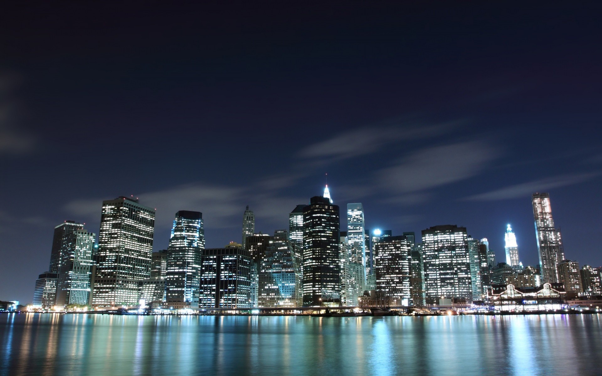 Nachtstadt in Lichtern am Flussufer