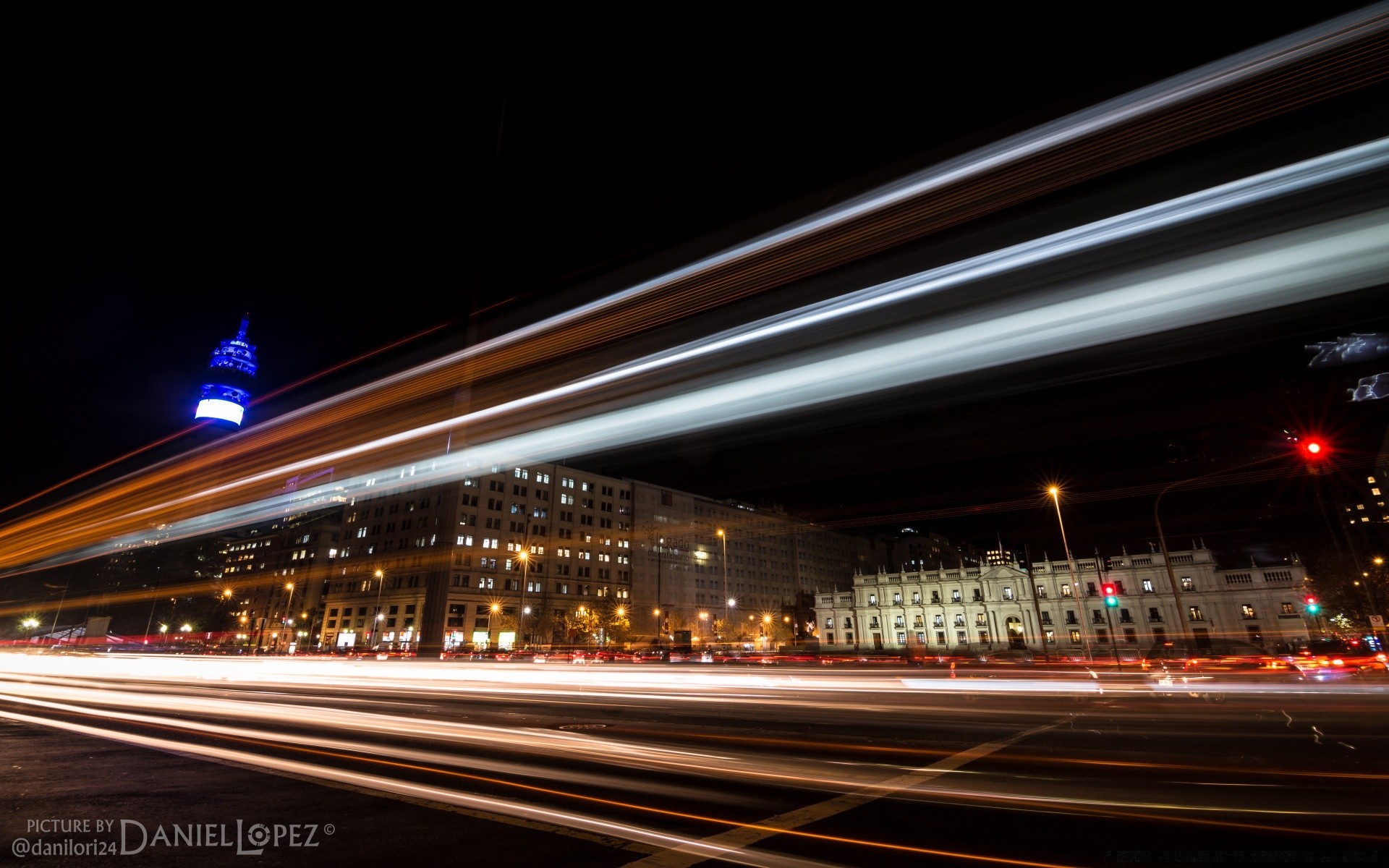 Nachtbrücke mit Autobahn und Fußgängerzone