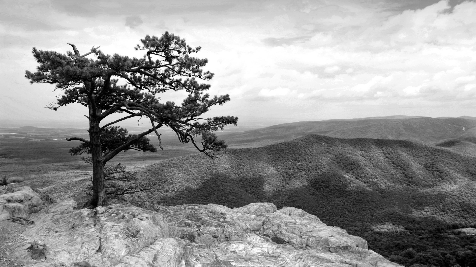 Foto eines Baumes im Sommer auf dem Hintergrund eines Wasserfalls