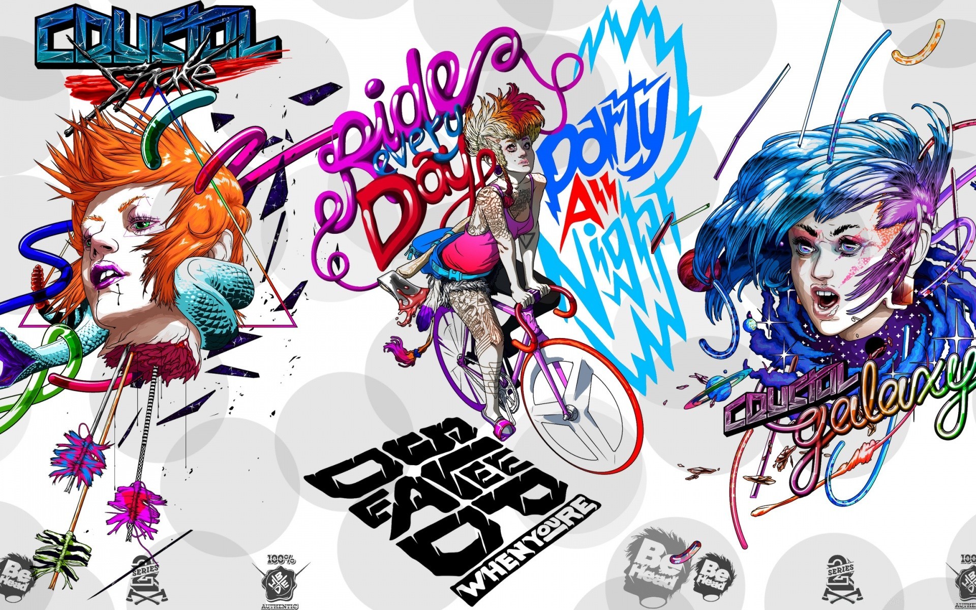 Auf rosa Hintergrund farbige Punkte und Formen