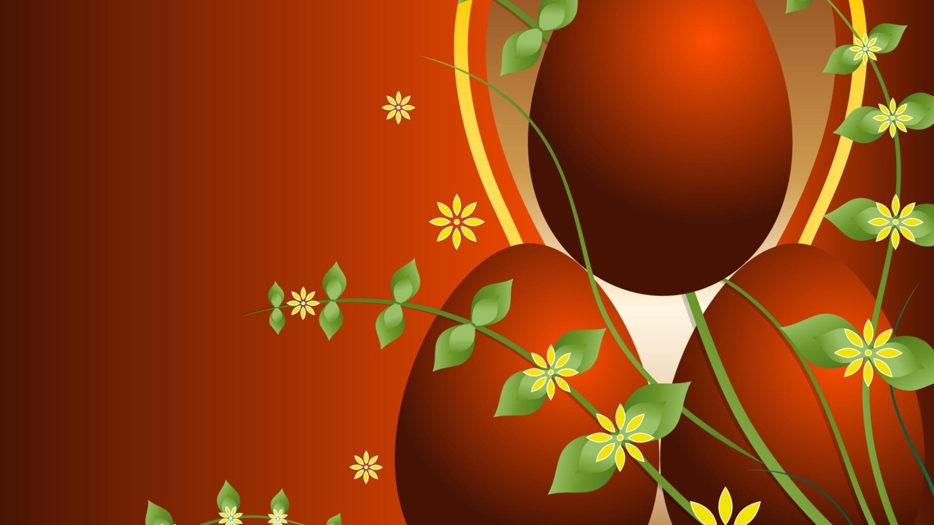 Ostereier mit grünen Stängeln und kleinen gelben Blüten