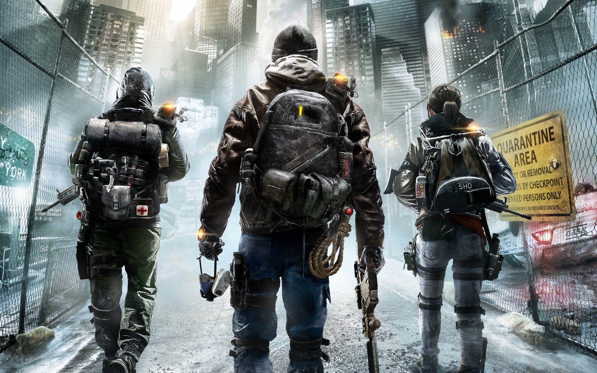 Protestanten gehen durch eine verlassene Stadt