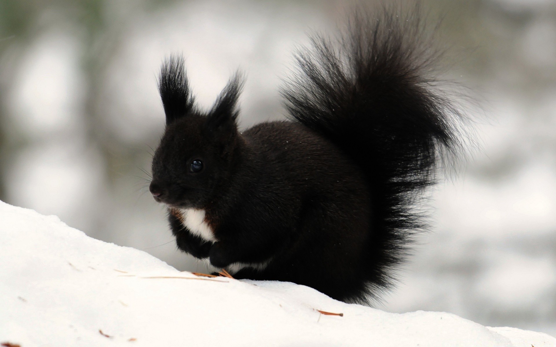 Kleines schwarzes Eichhörnchen mit weißem Kragen
