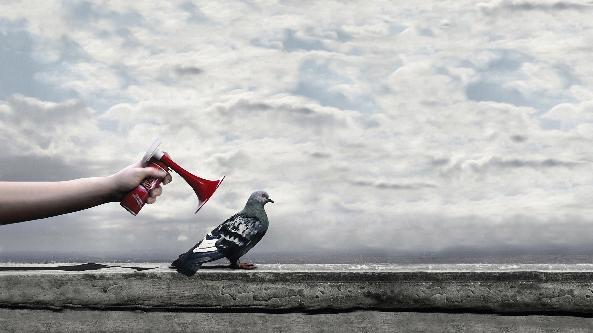 Taube auf grauem Himmel Hintergrund