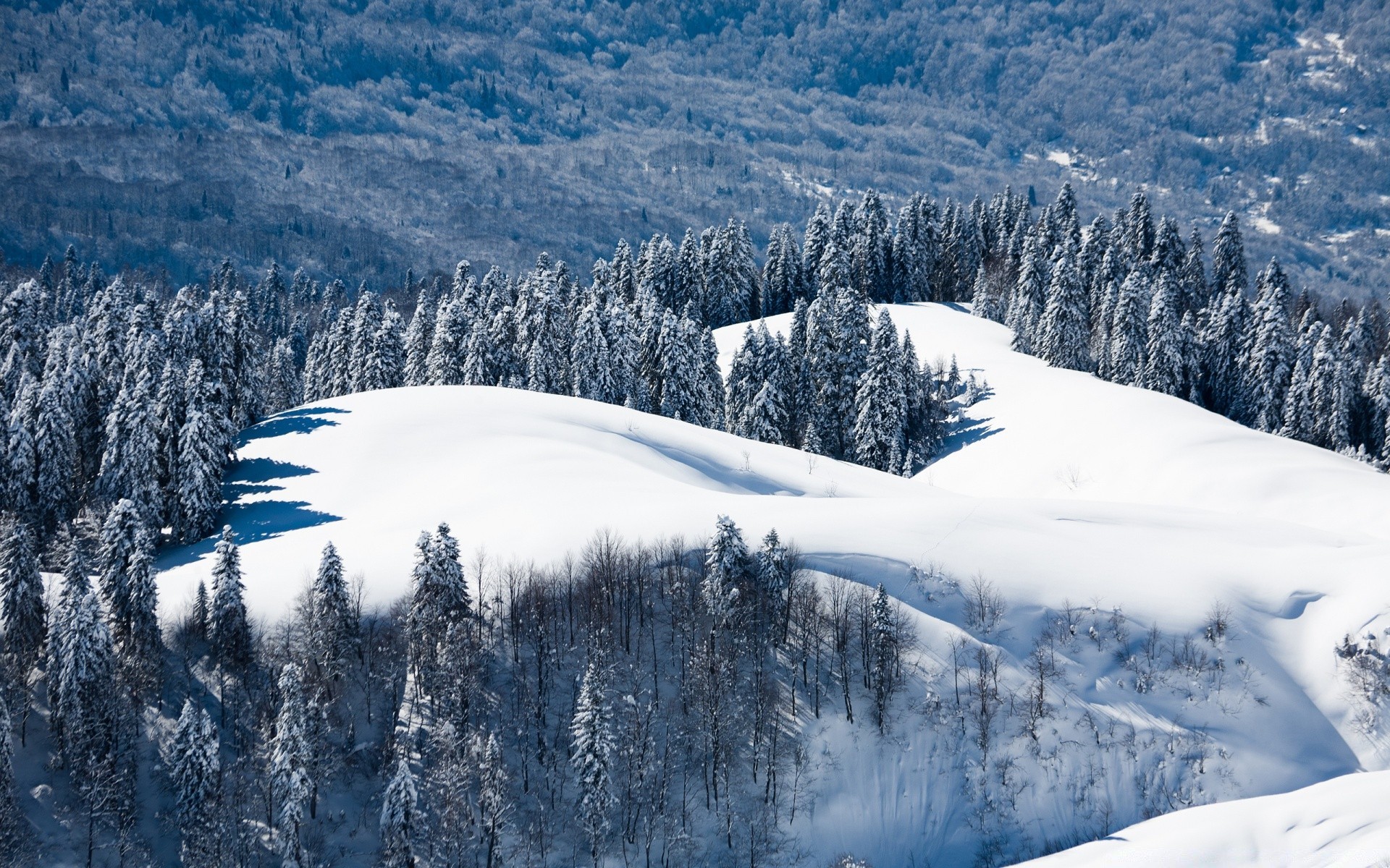 Schneereicher Frost umhüllt Weihnachtsbäume