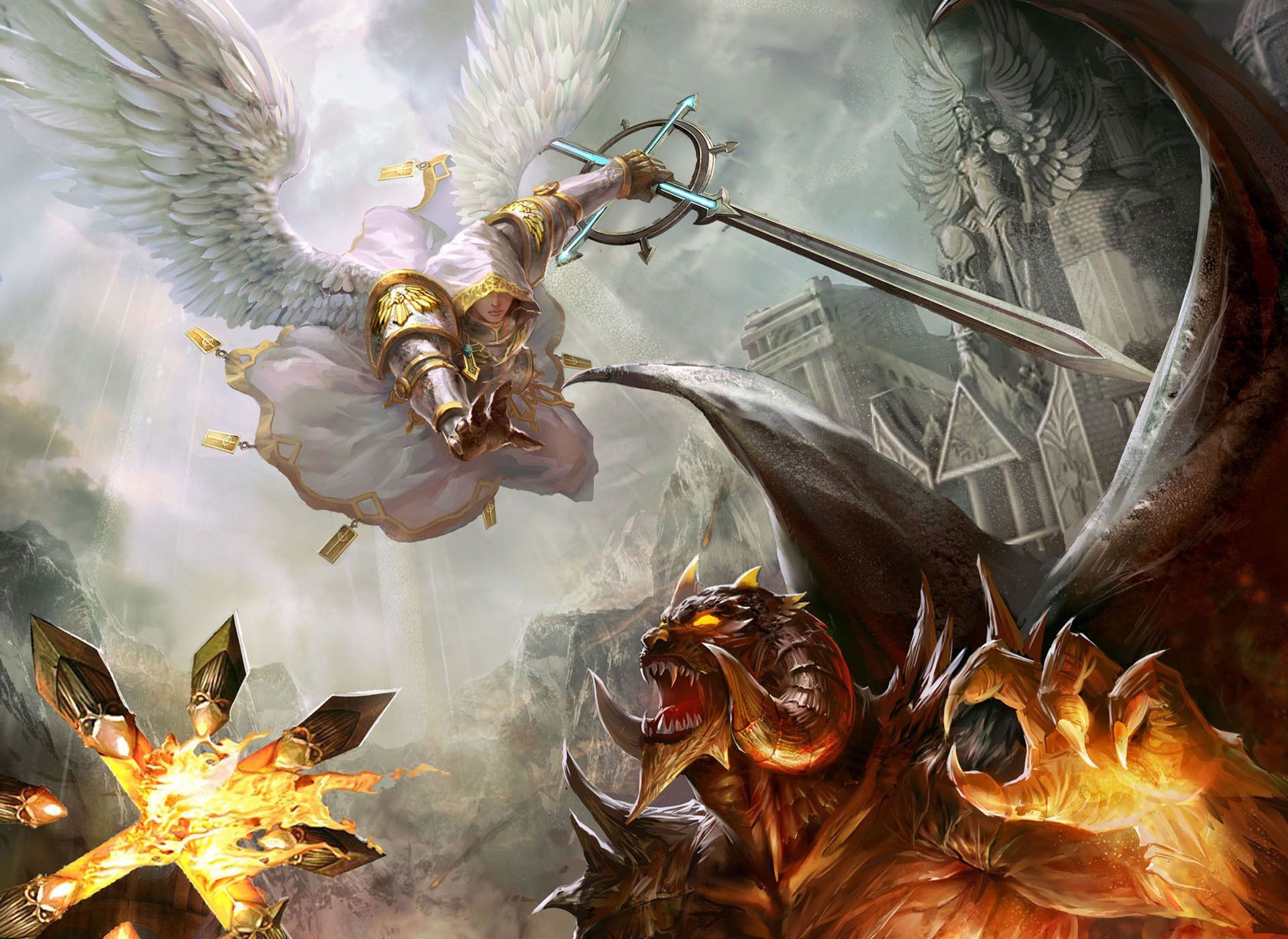 Ein mächtiger Ritter steht mit einem Schwert