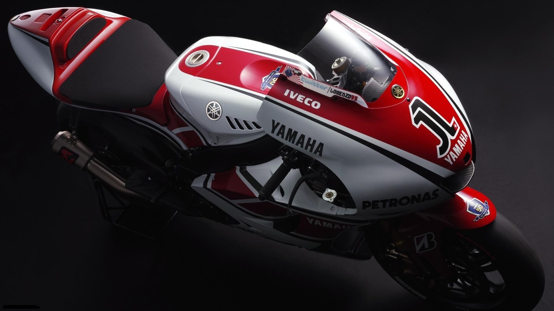 Riesiges Yamaha Motorrad auf grauem Hintergrund