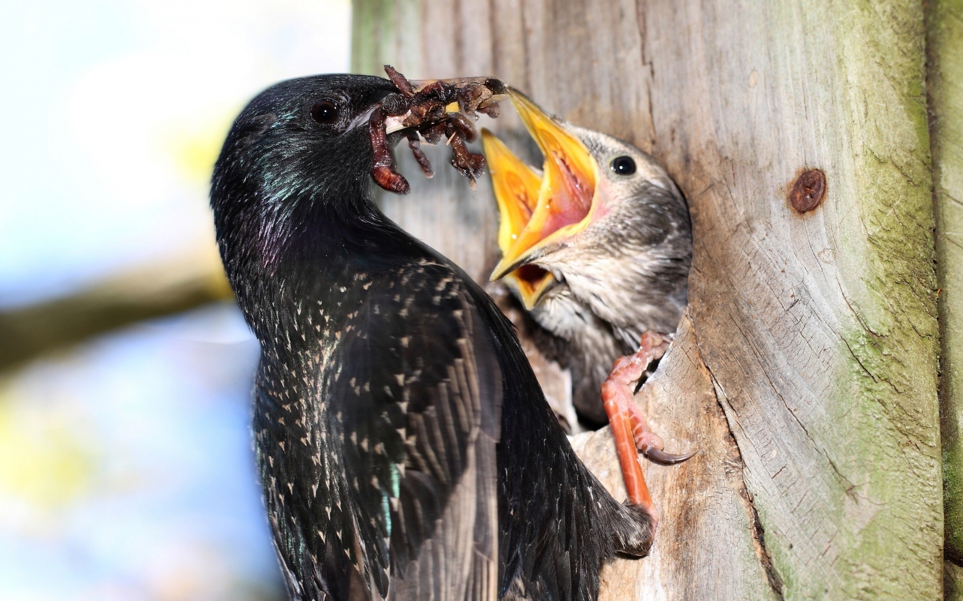 Paar gefiederten auf dem Hintergrund der Vegetation