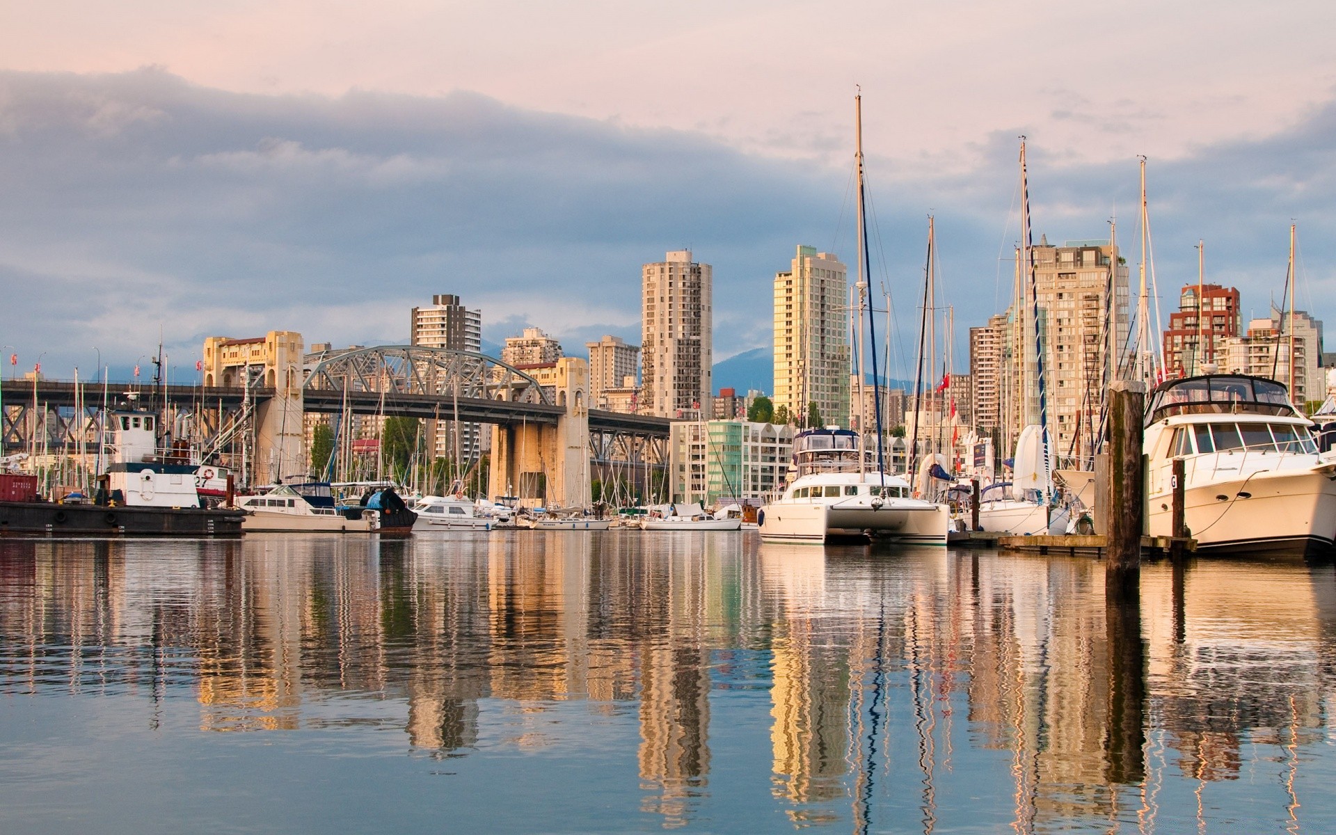 Schöne Landschaft von Wolkenkratzern über dem Fluss