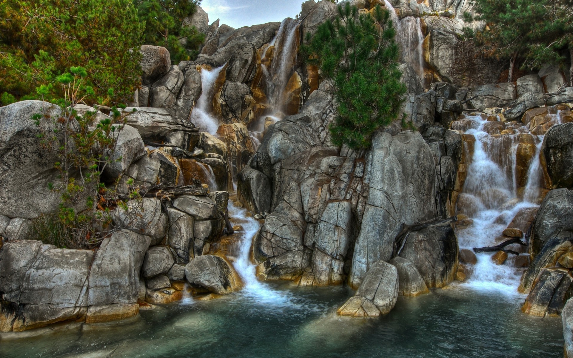Grafiken von einem stürmischen Bach in einem abgelegenen Wald