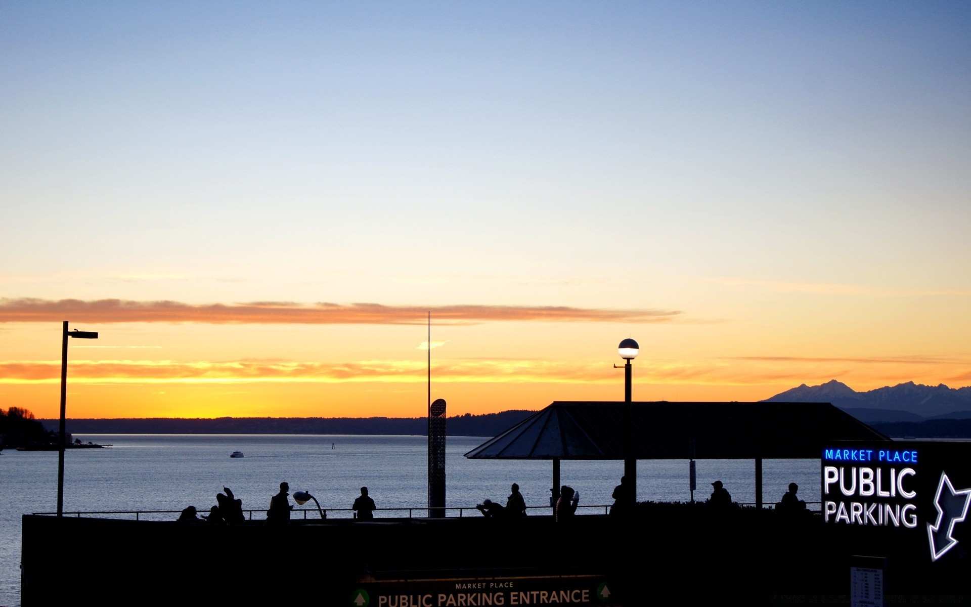 Sonnenuntergang am pier mit silhouetten von menschenSonnenuntergang am Pier mit Silhouetten von Menschen
