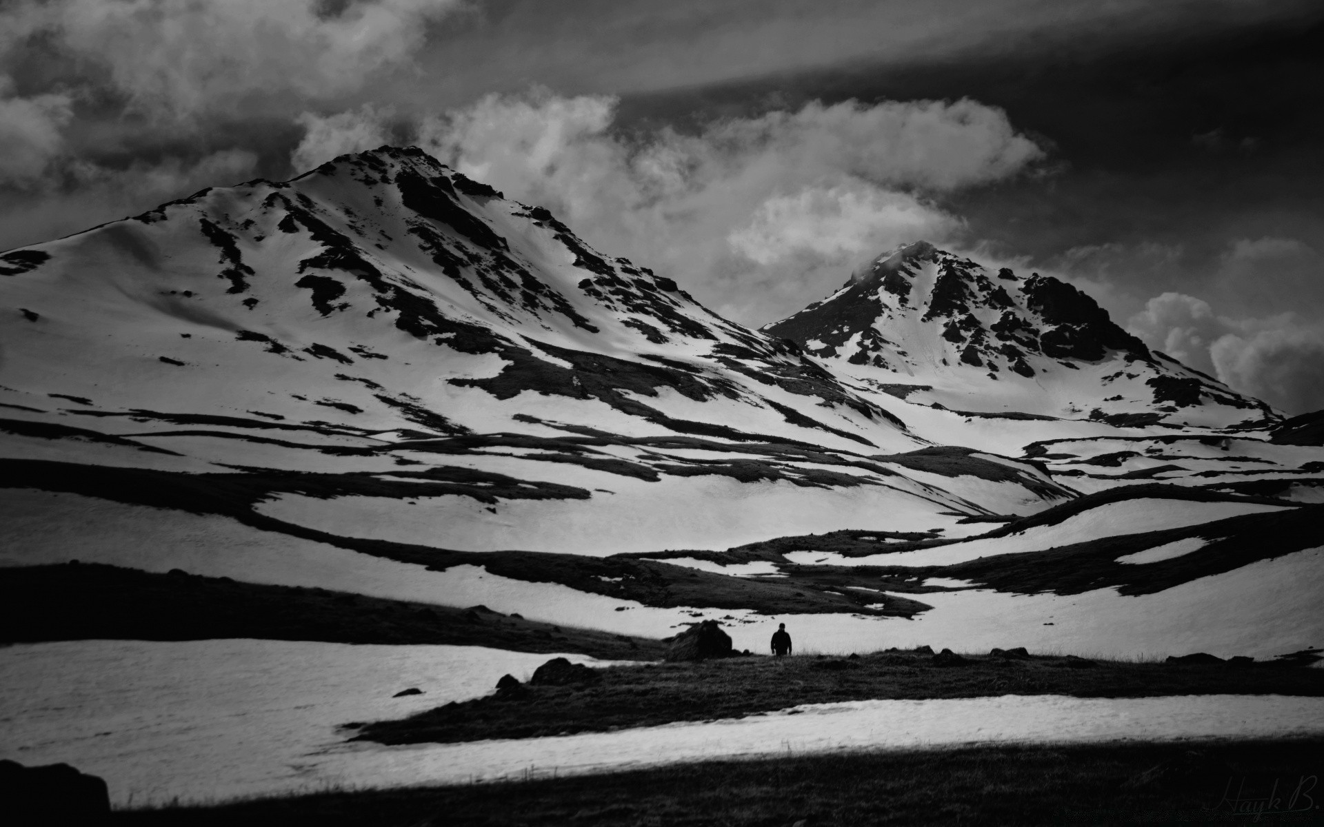Grün-weiße Landschaft - Schnee, Berge und Wolken