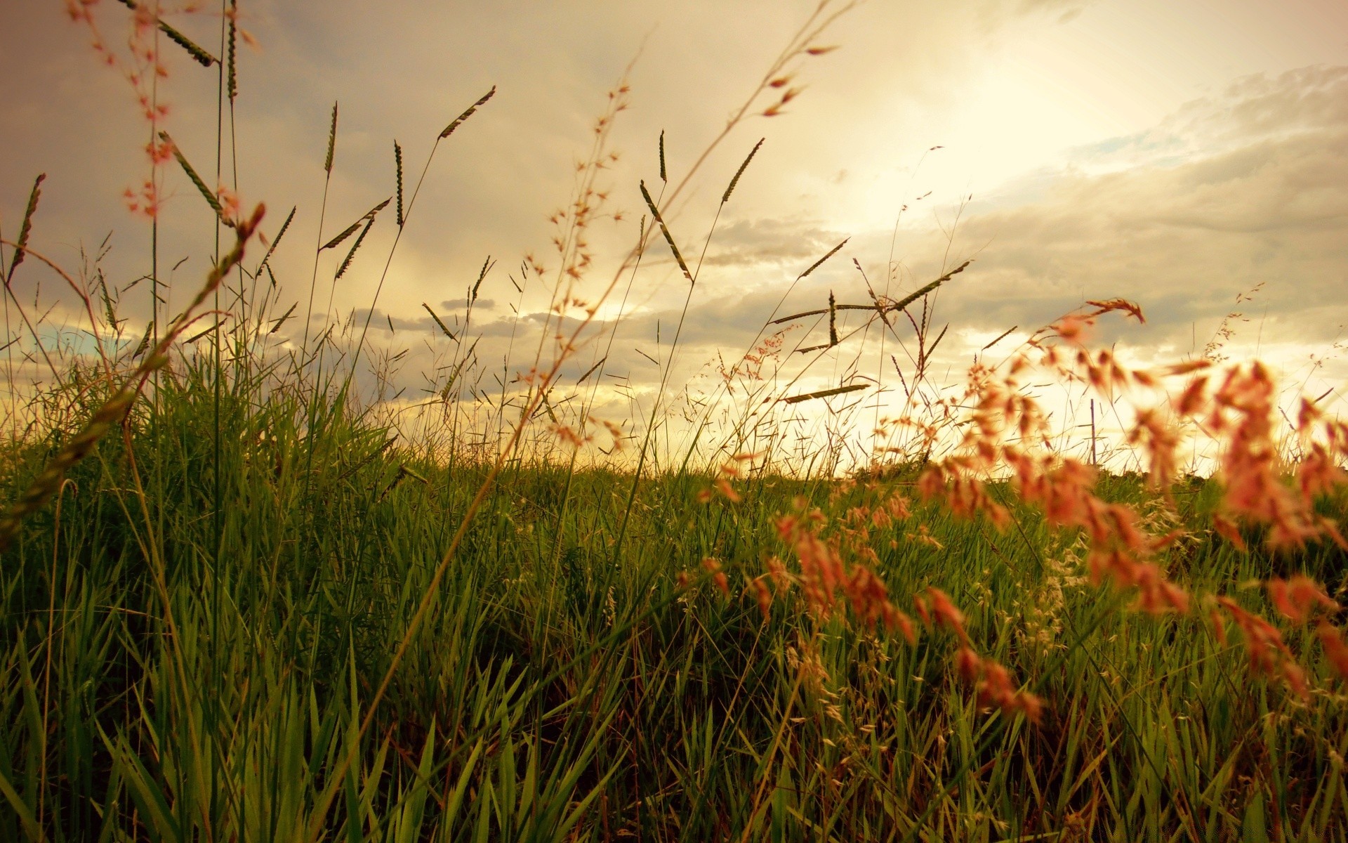 Die Ährchen auf dem Feld sind von der Sonne beleuchtet