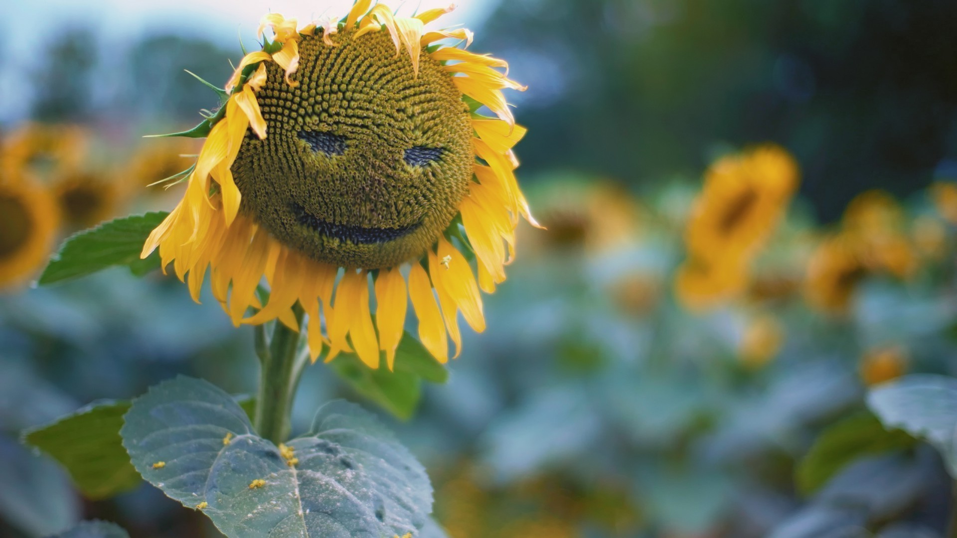 Lächelnde Sonnenblume im Feld