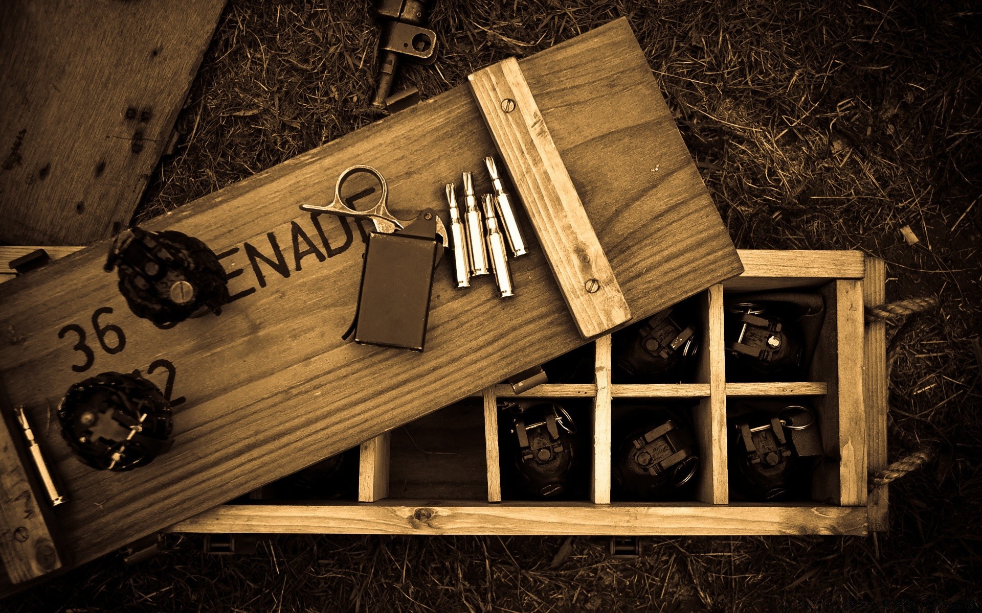 Die Waffe ist in einer Holzkiste versteckt