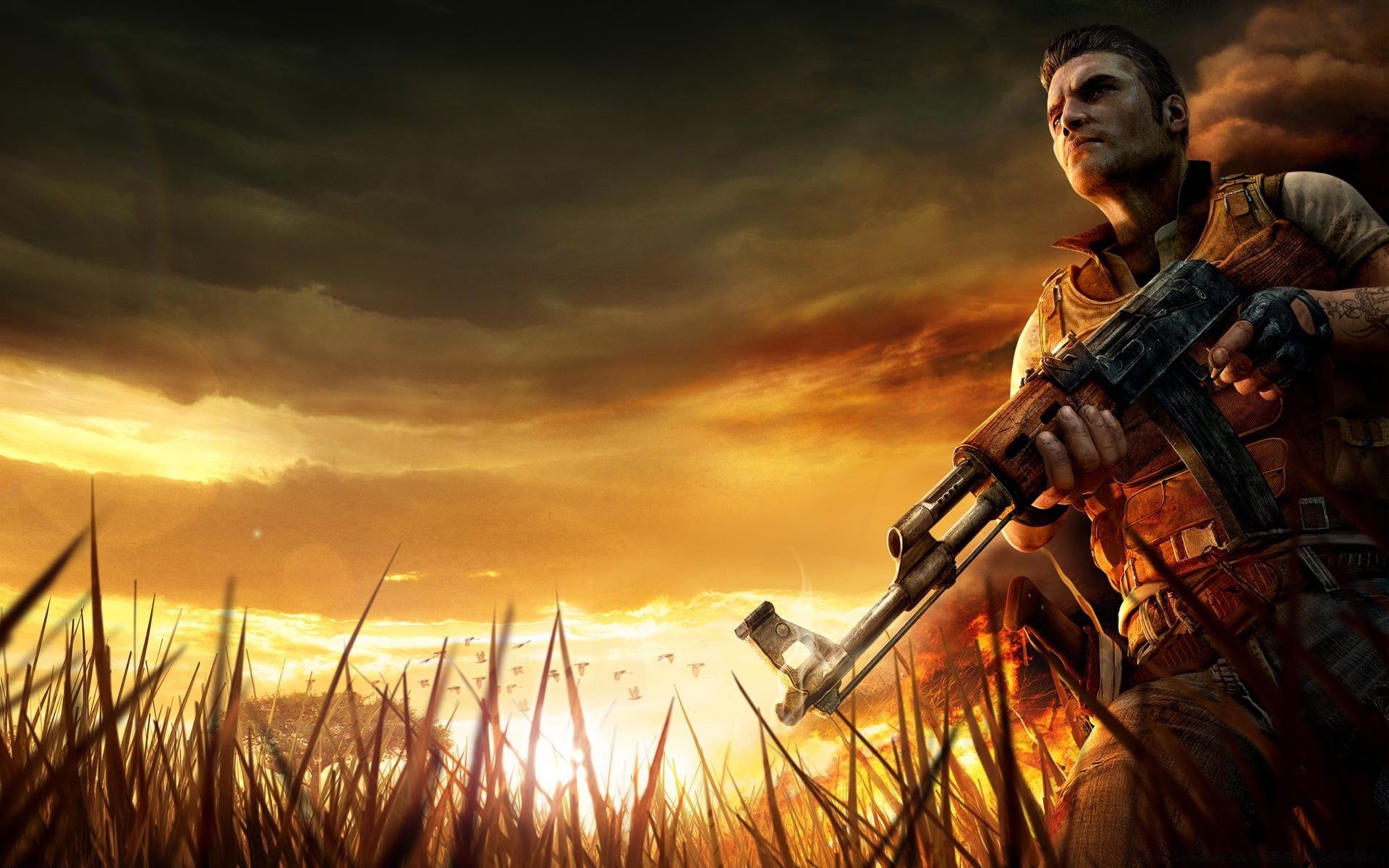 Abbildung eines Charakters mit einer Waffe und einem gezeichneten Hintergrund