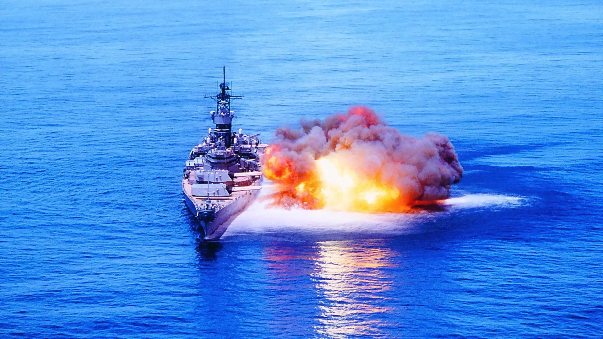Flugzeugträger, begleitet von kleinen Kriegsschiffen