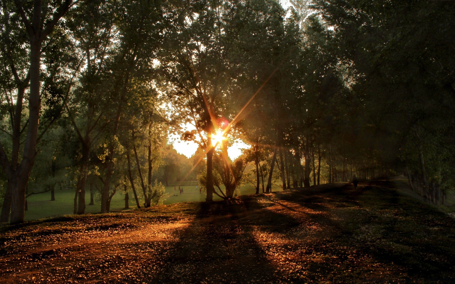 Sonnenuntergang im schönen grünen Wald
