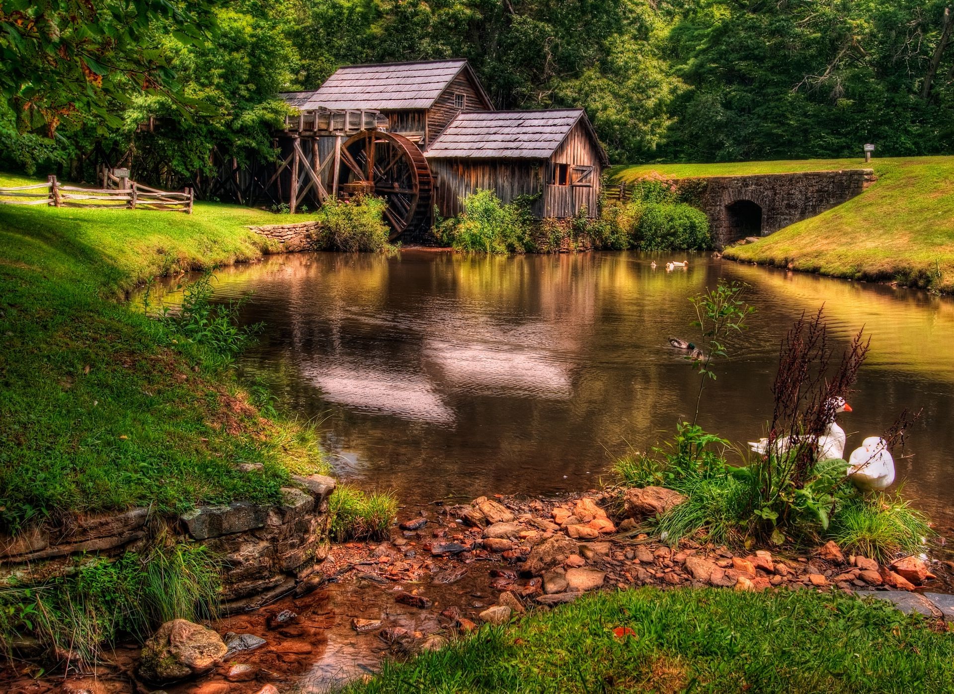Felsbrocken spiegeln sich im dunklen Wasser wider