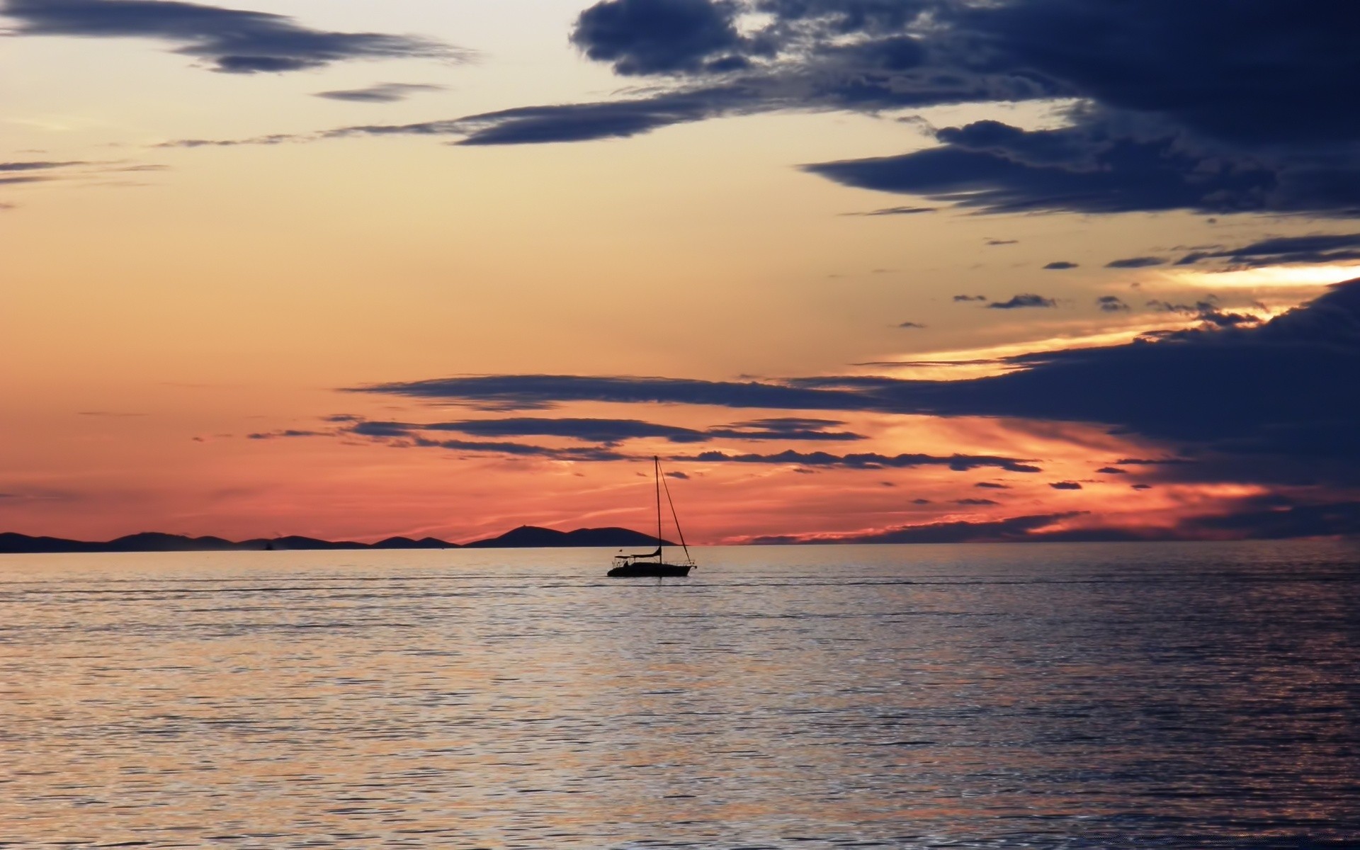 Gelber Sonnenuntergang auf dem Hintergrund des Meeres