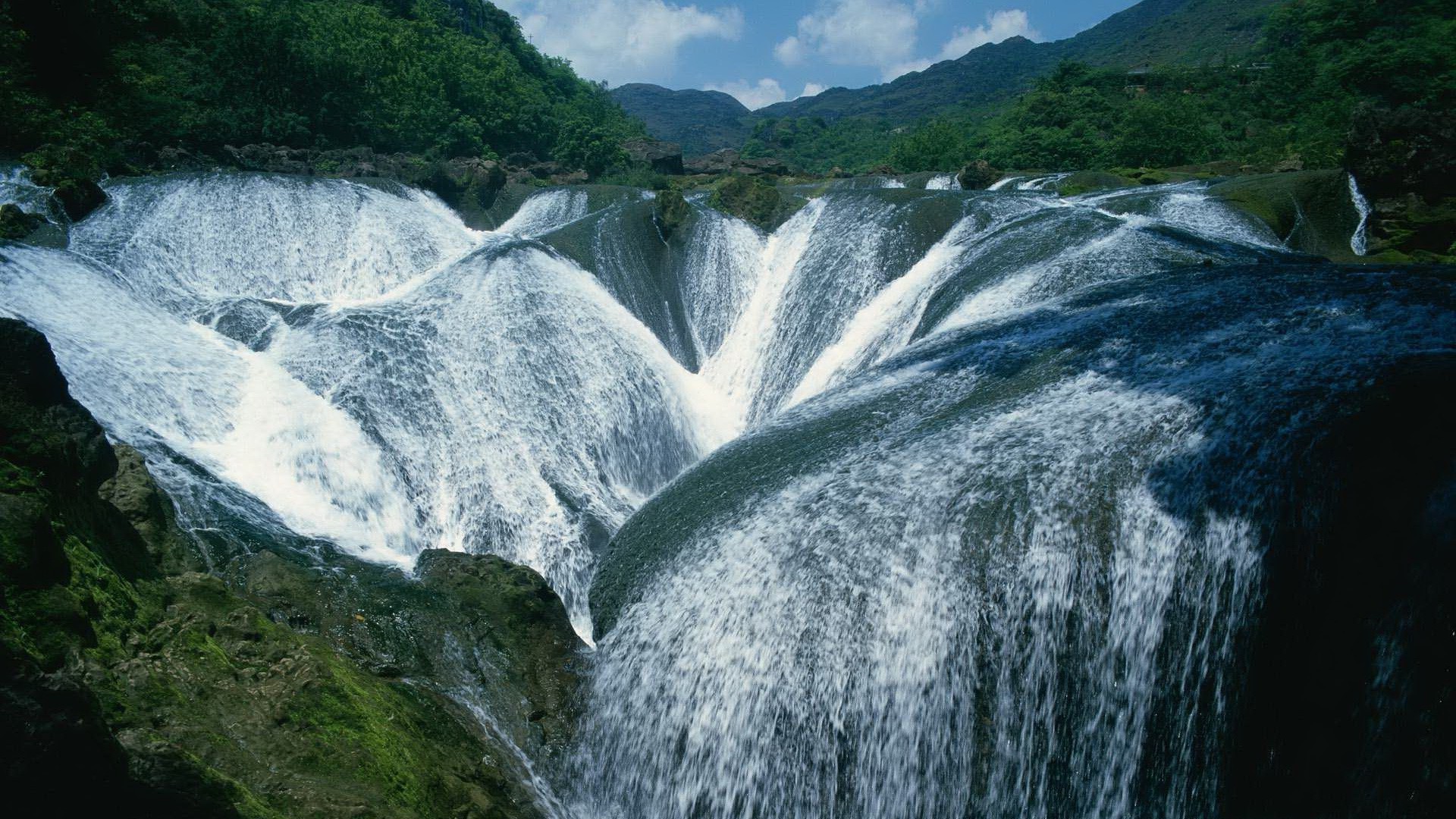 Faszinierende Wasserfälle auf Himmelshintergrund