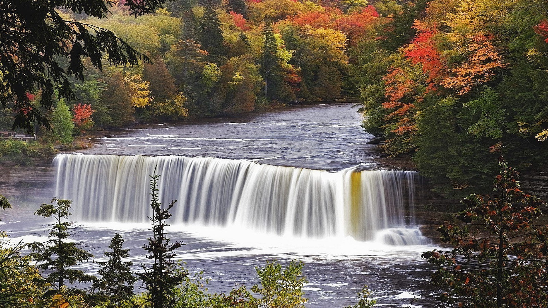Landschaft. Wasserfall. Gepflegte Bäume. Geschützter Ort