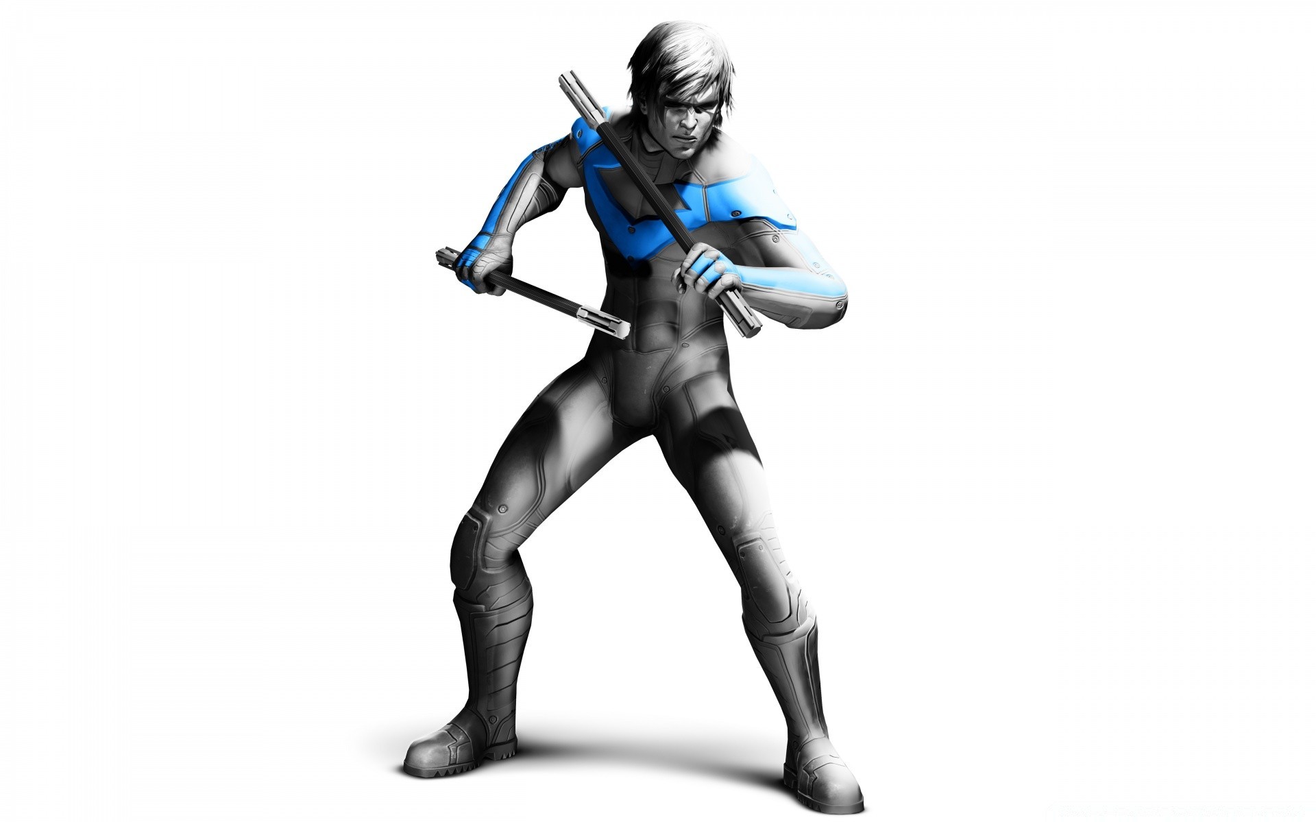 Junger nackter batman mit Stöcken in der Hand
