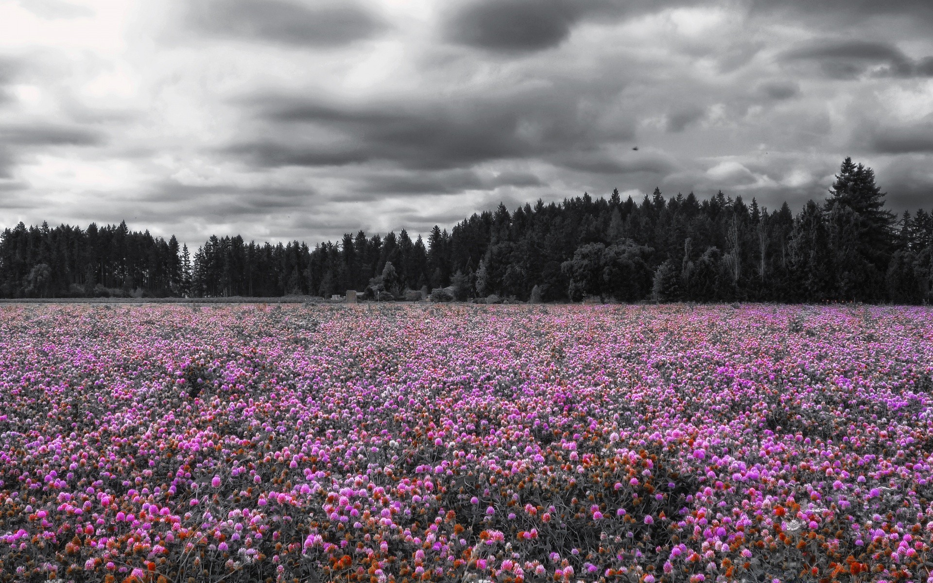 Landschaft. feld der violetten blumen bei sonnenuntergangLandschaft. Feld der violetten Blumen bei Sonnenuntergang