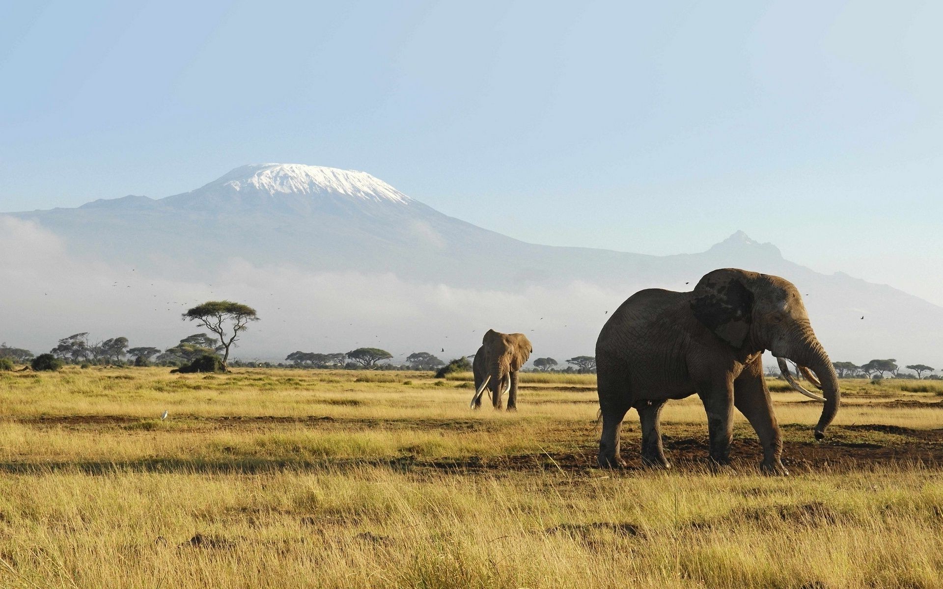 Ein Elefant kratzt seinen Bauch gegen einen Stein