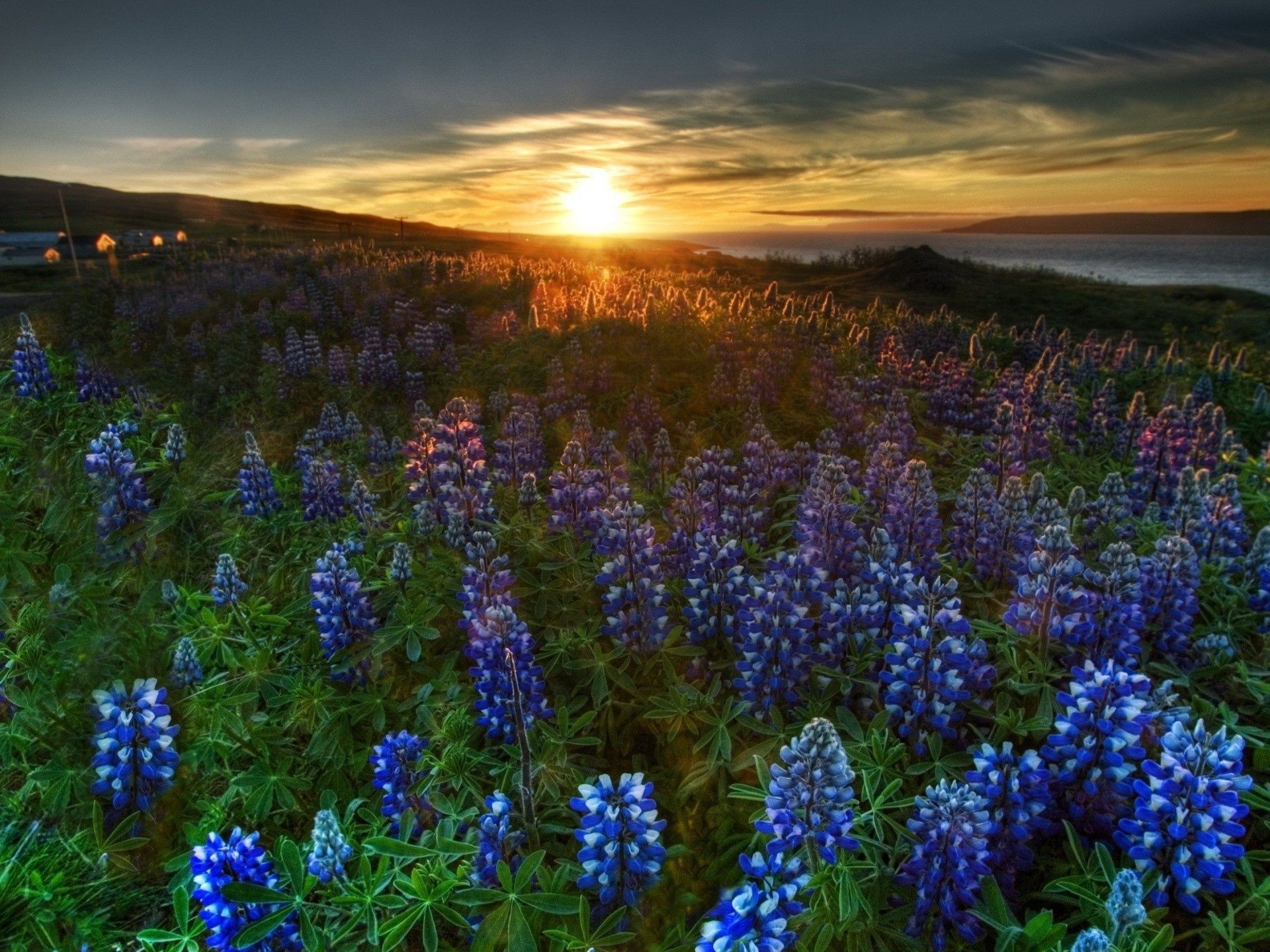 Feld mit Blumen auf einem schönen Himmelshintergrund