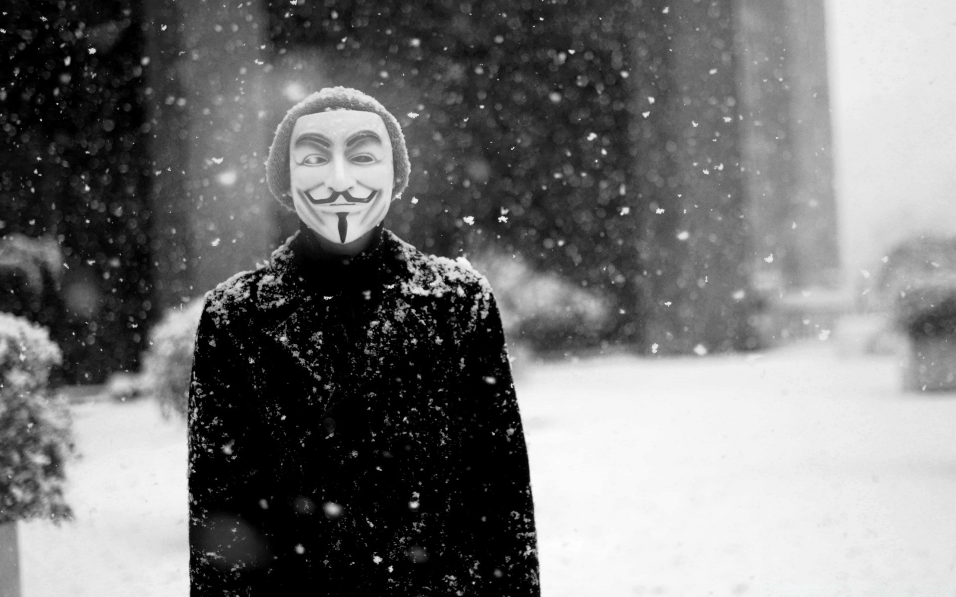 Maskierter mann auf hintergrund einer verschneiten straßeMaskierter Mann auf Hintergrund einer verschneiten Straße