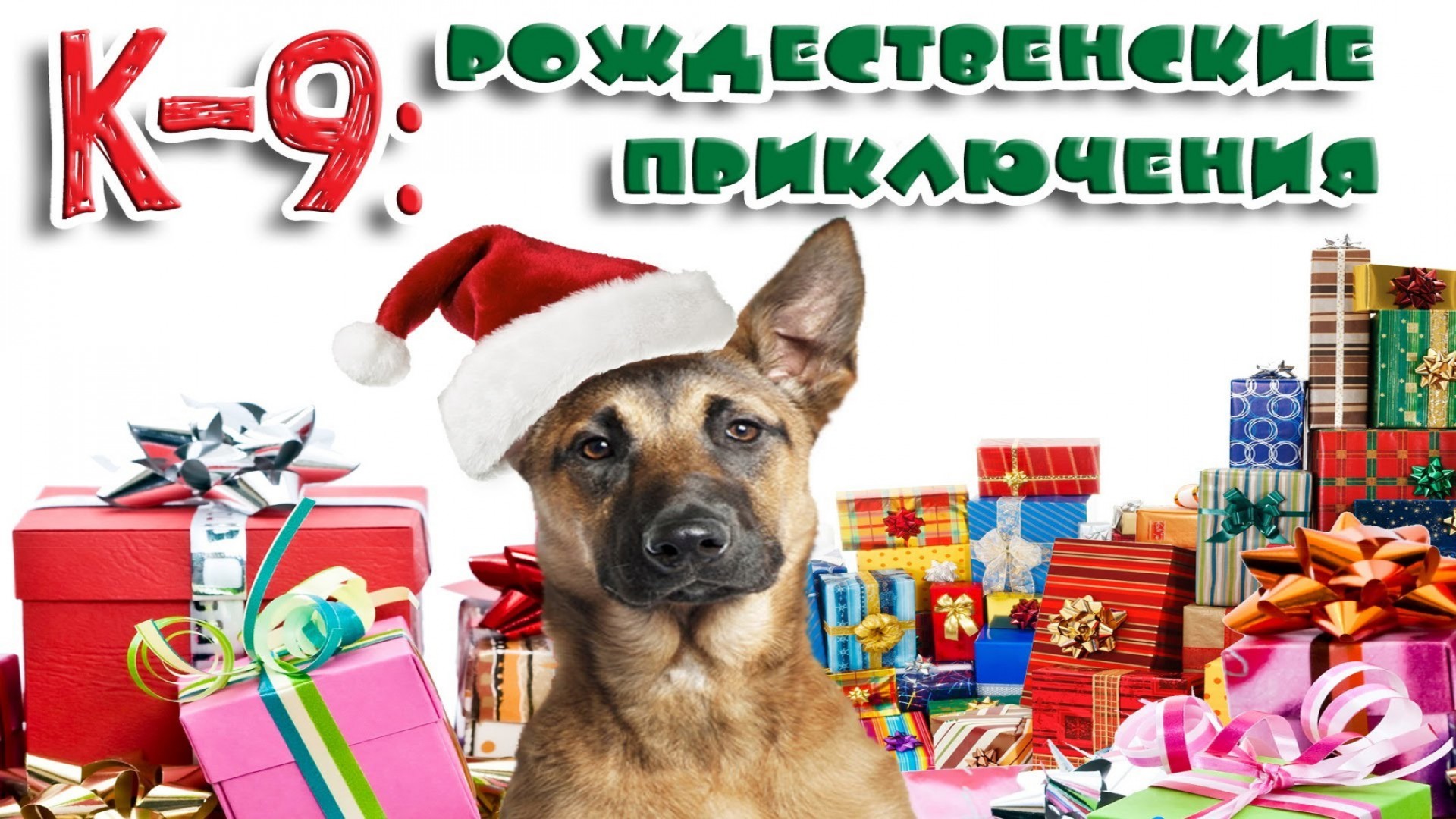 Der hund trägt eine weihnachtsmütze mit geschenkenDer Hund trägt eine Weihnachtsmütze mit Geschenken
