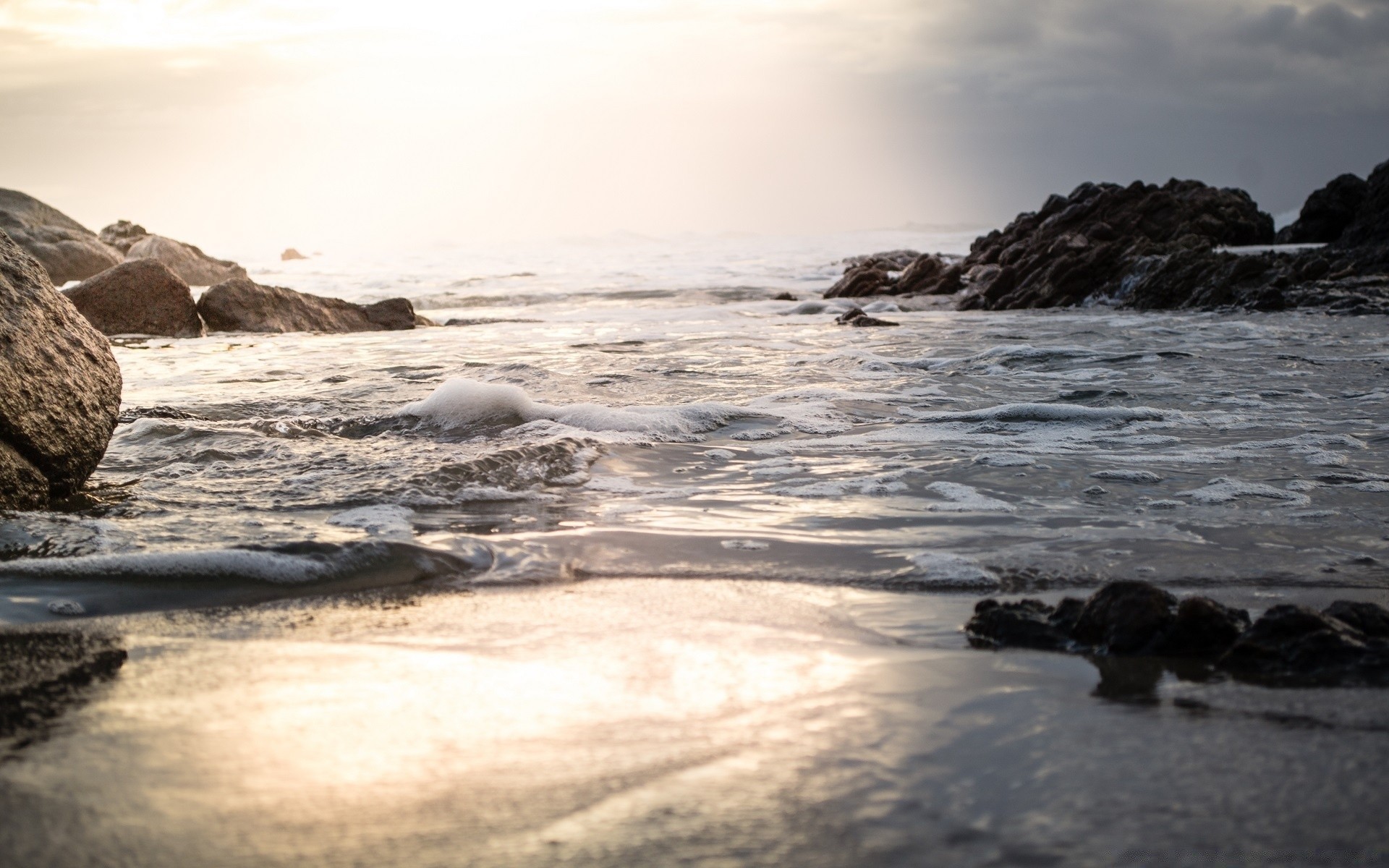 Tosende Wellen des Meeres bei Sonnenuntergang