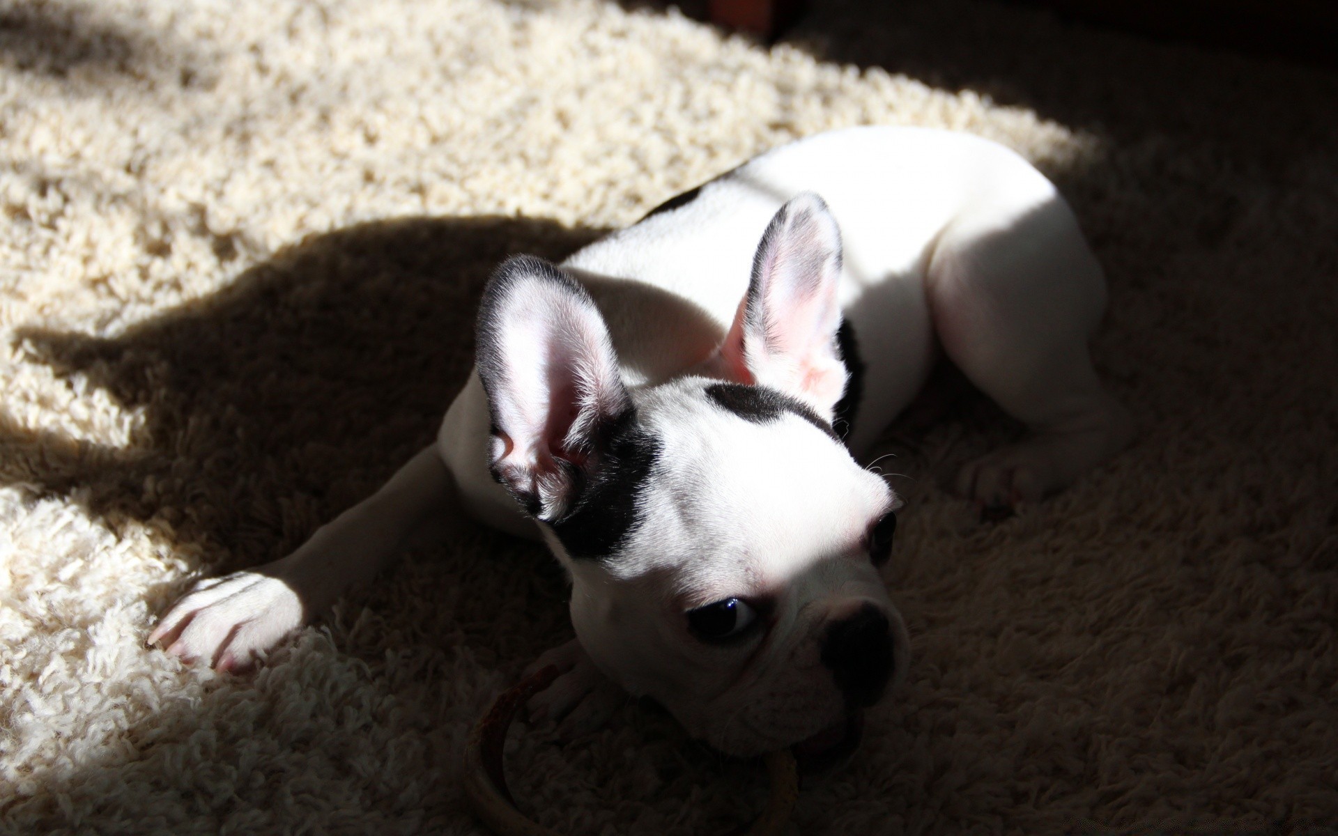 Junge Bulldogge ruht sich nach dem Spiel aus
