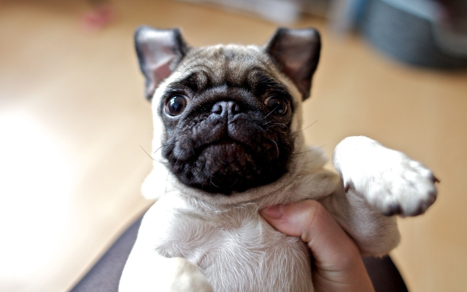 Französischer Bulldoggen-Welpe schaut hingebungsvoll zu