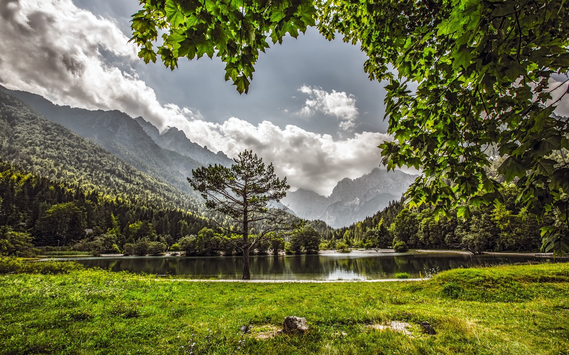 Park mit Berg- und Seeblick