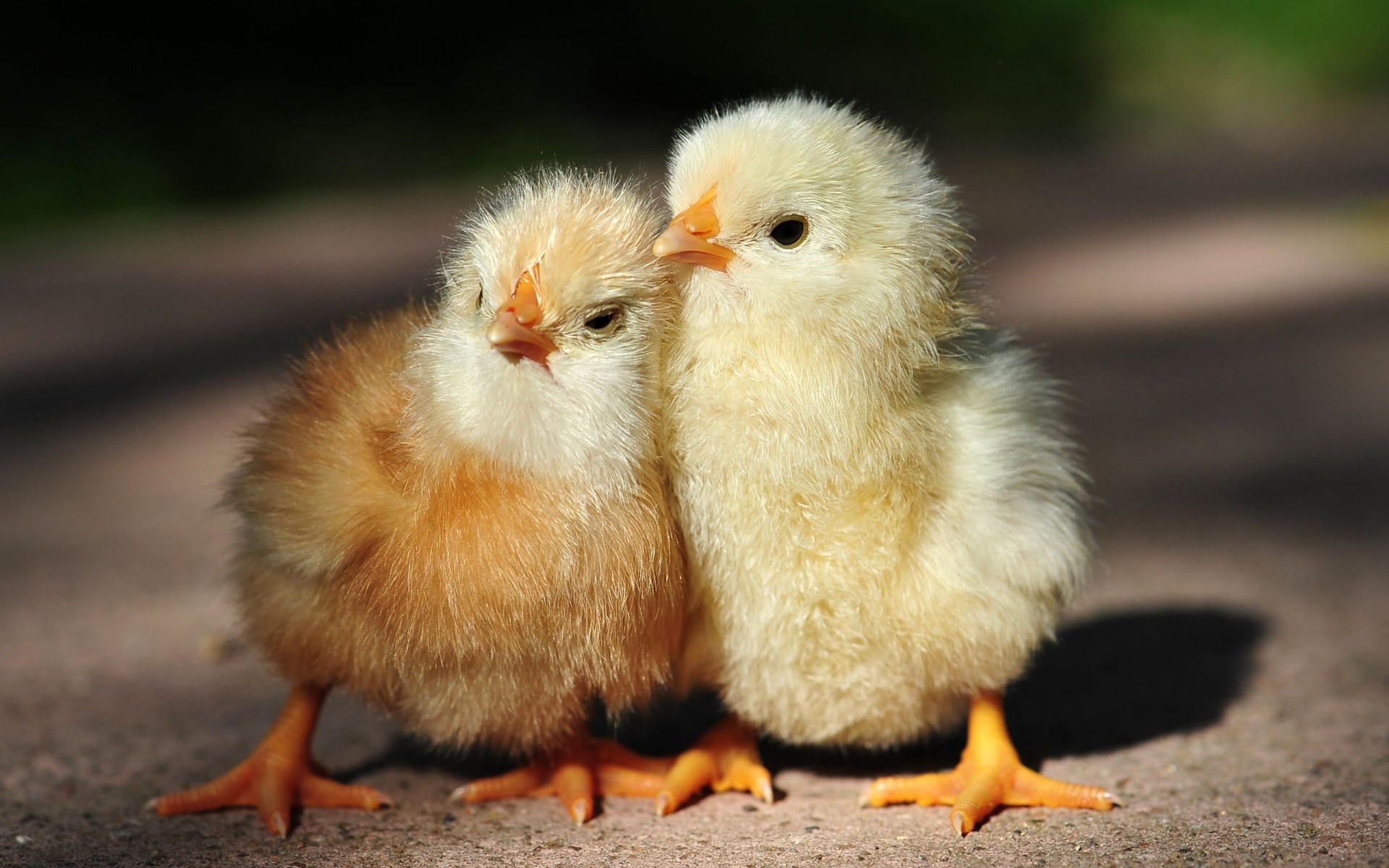 Zwei süße Küken, die sich aneinander drücken