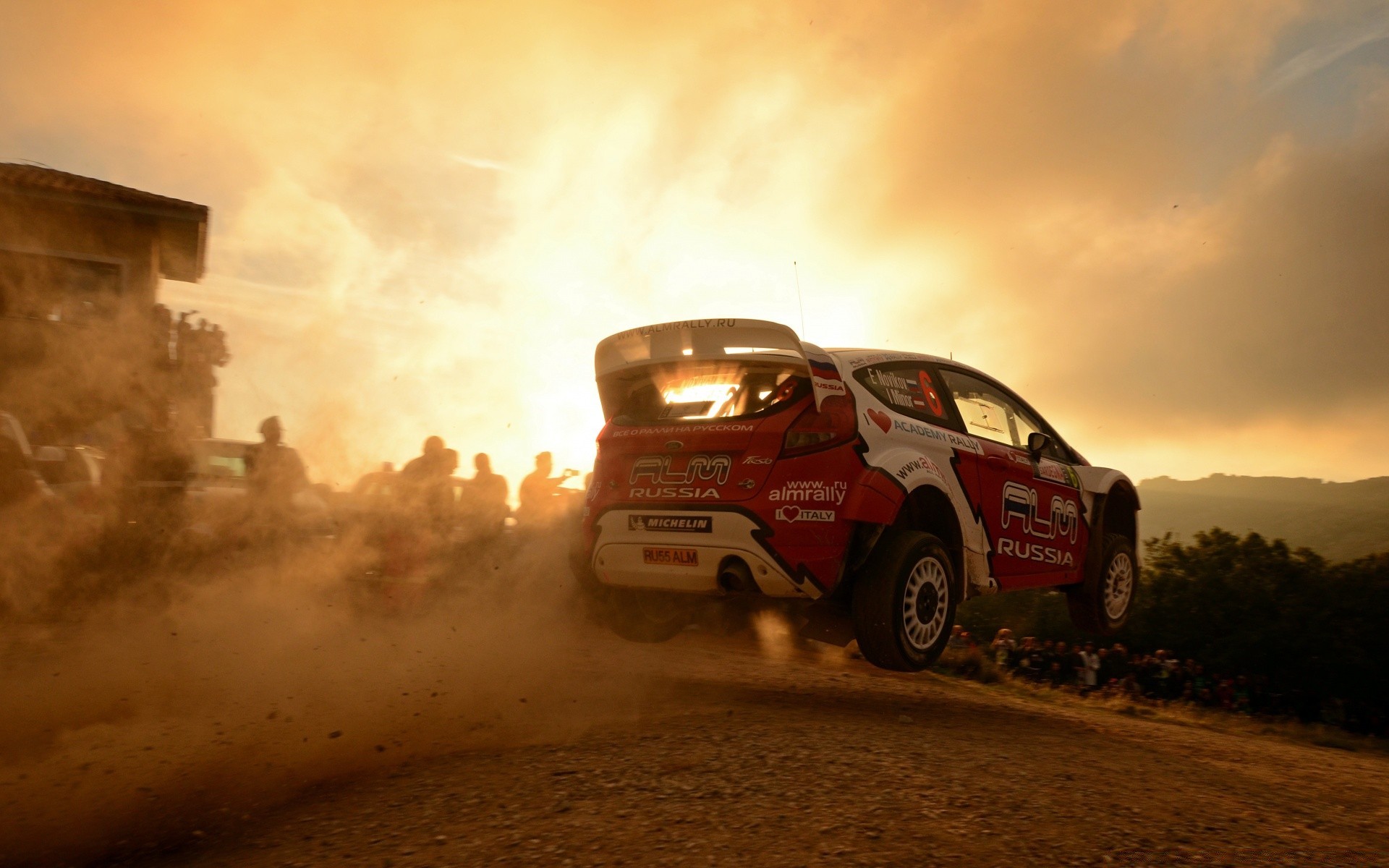 Rennwagen in der Wüste bei Sonnenuntergang Hintergrund