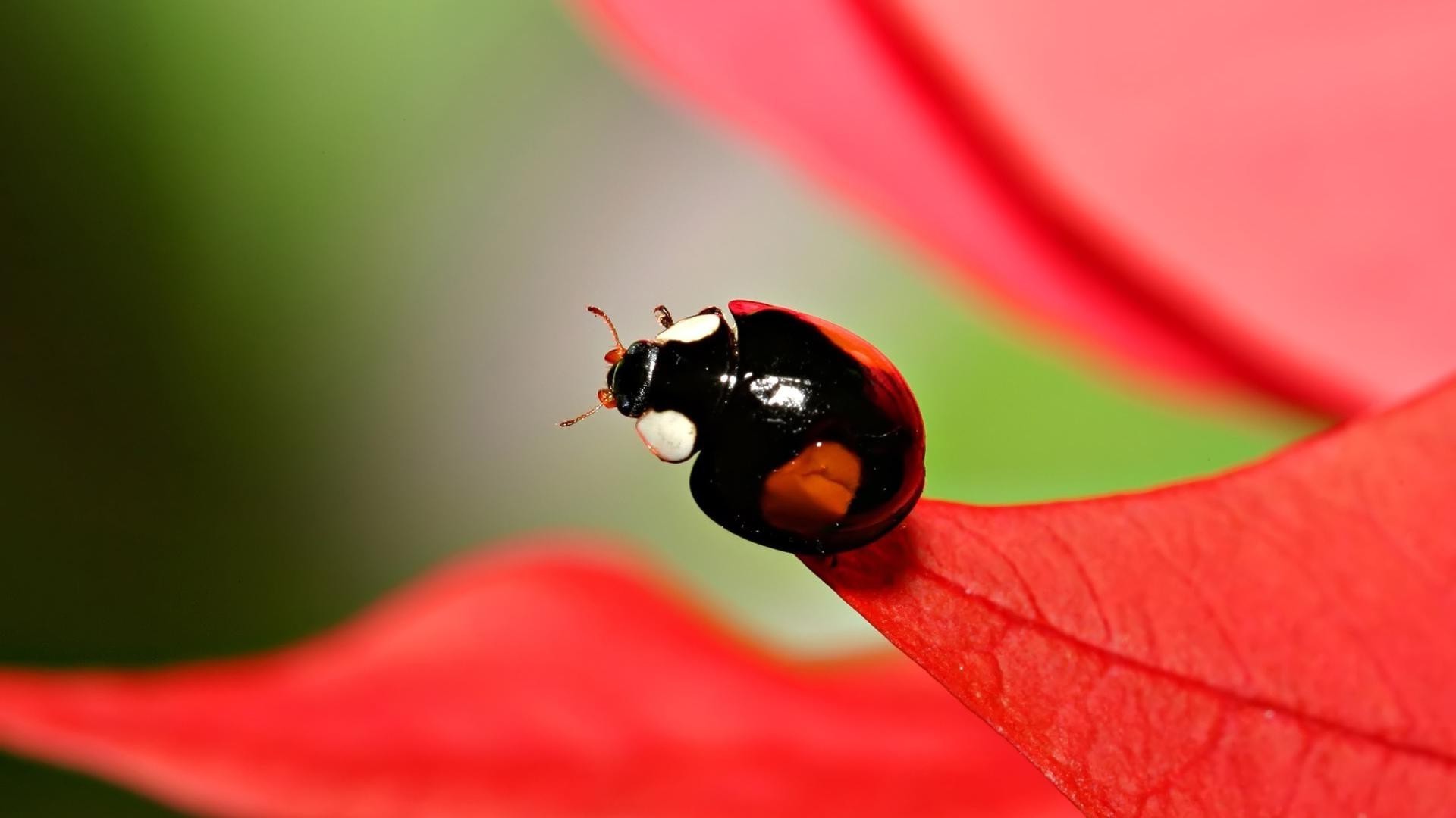Kleiner Marienkäfer auf verschwommenem Hintergrund