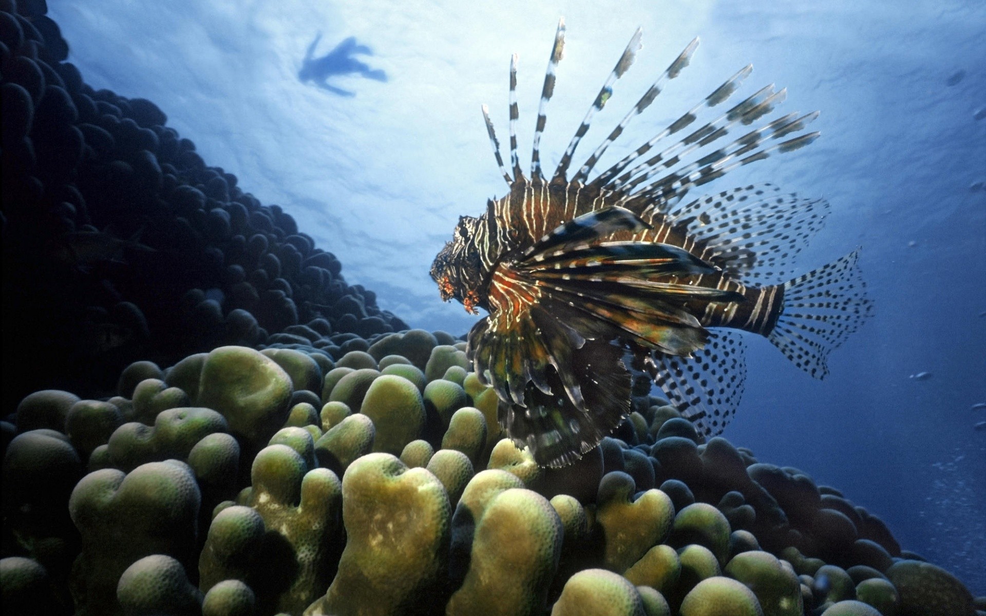 Meeresfische unter Wasser in der Nähe von Menschen