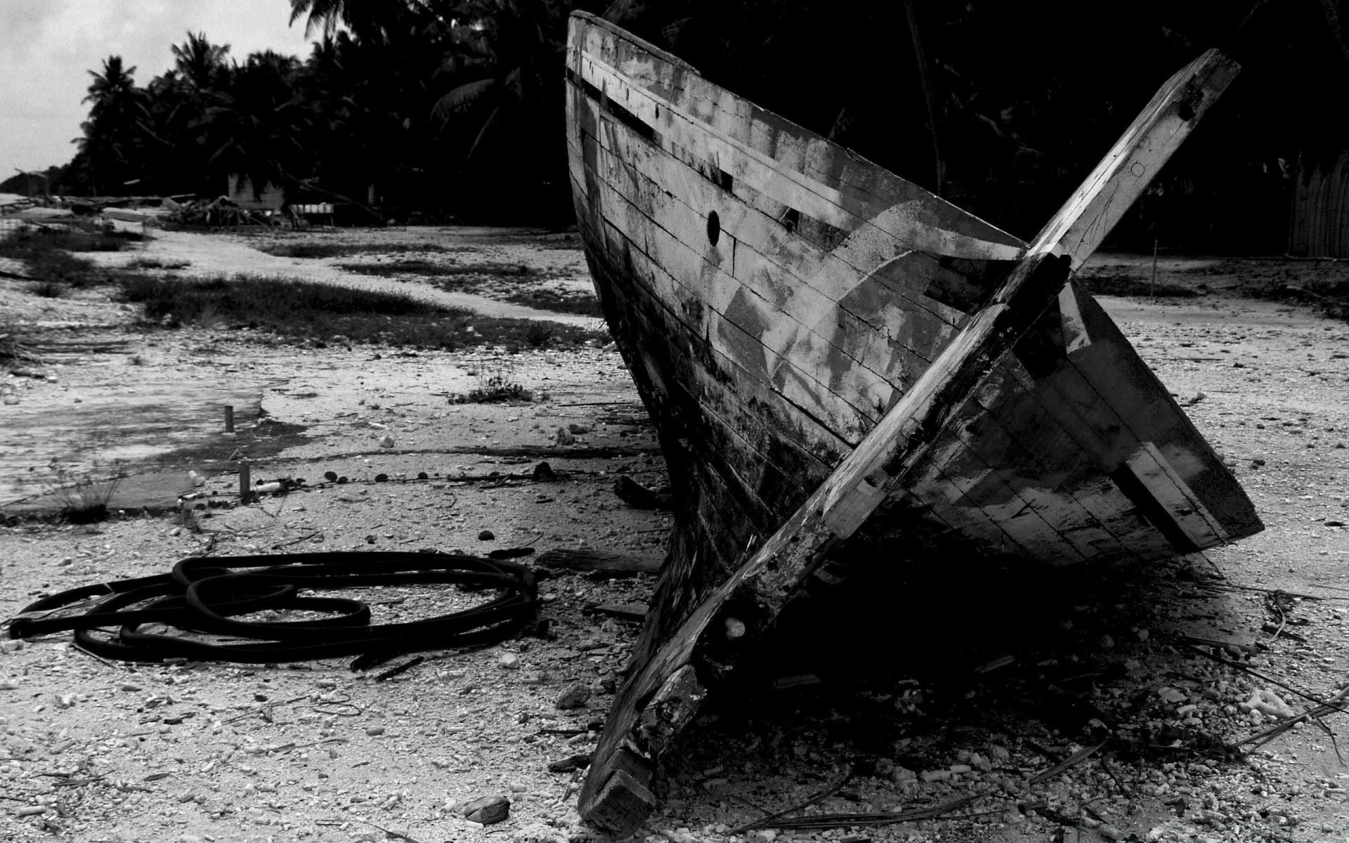 Verlassene Wrackteile des Schiffswracks am Ufer