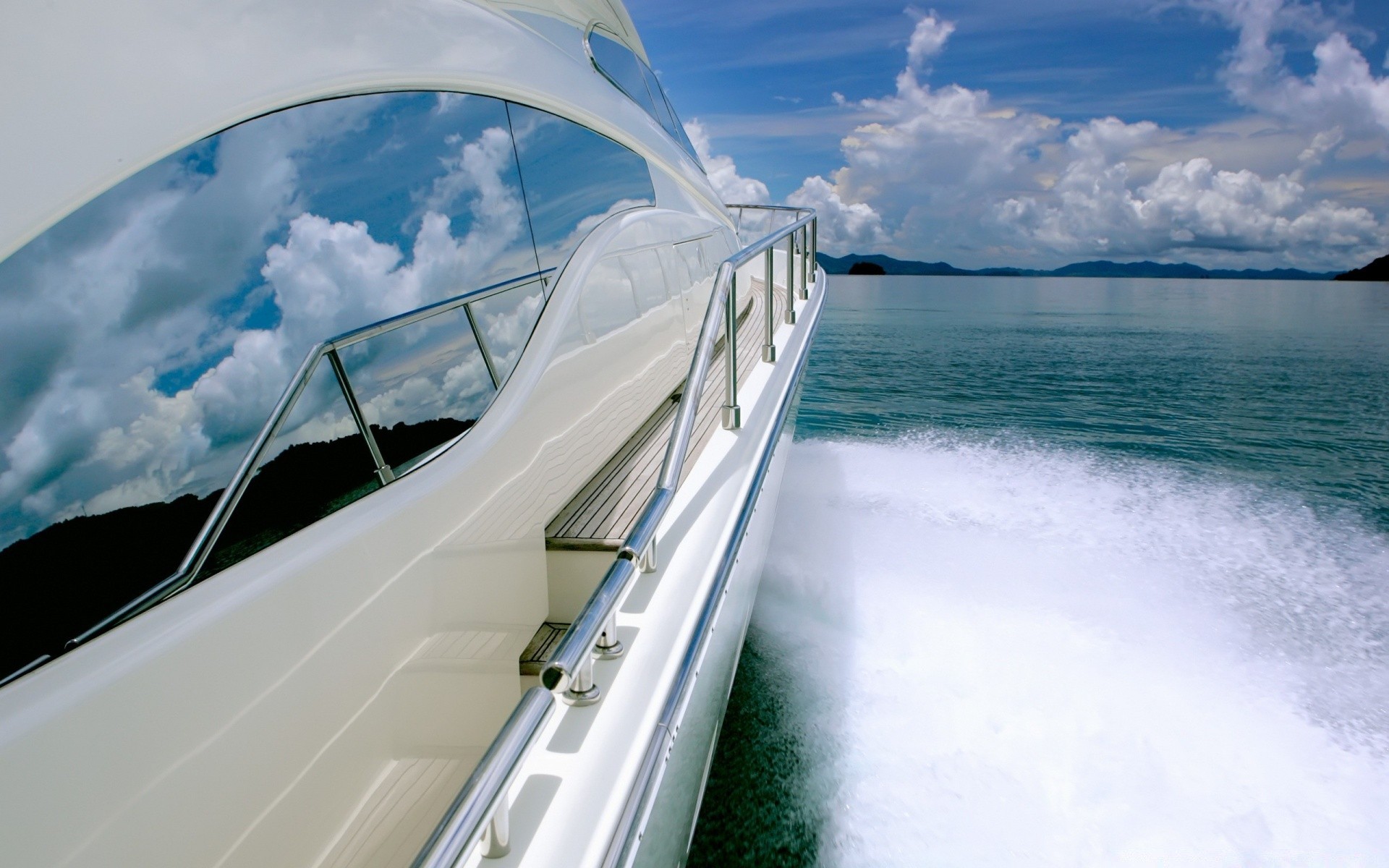 In der Nacht auf der Flussoberfläche auf einer Yacht
