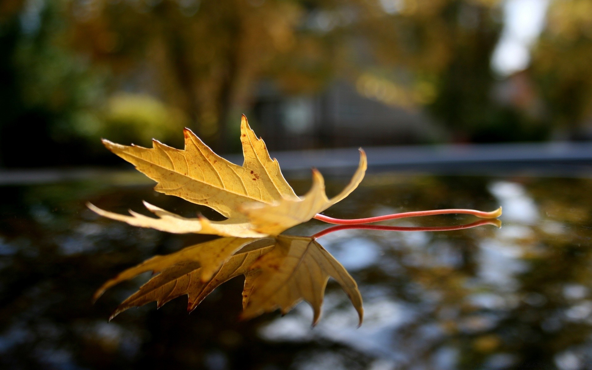 Bild eines Herbstblattes auf einem verschwommenen Hintergrund